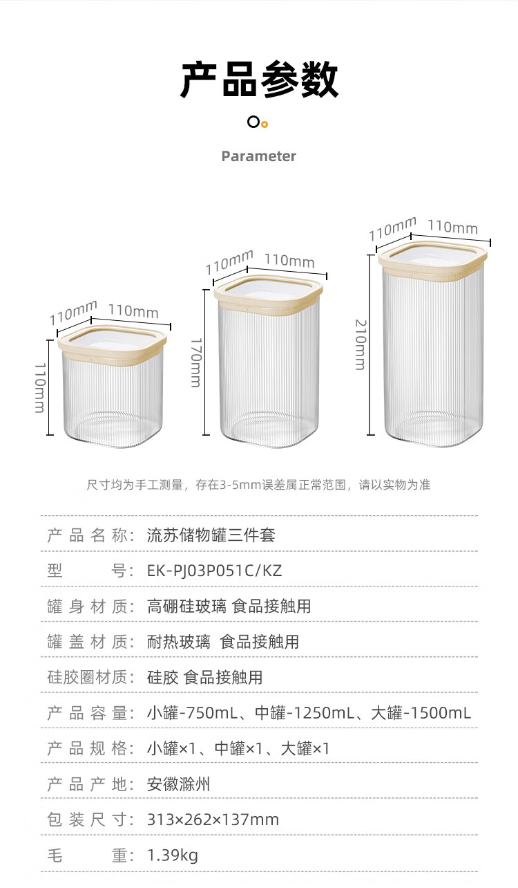 【分仓直发包邮】康宁流苏储物罐三件套EK-PJ03P051C/KZ