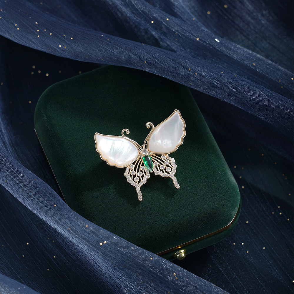 子佩集【蝴蝶之夏】珍珠惜王妃胸针【ZXXZ002】镀金白贝母2601