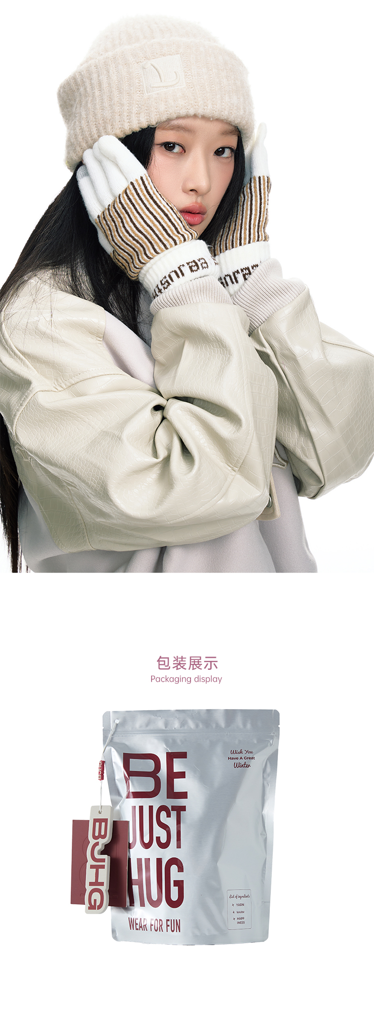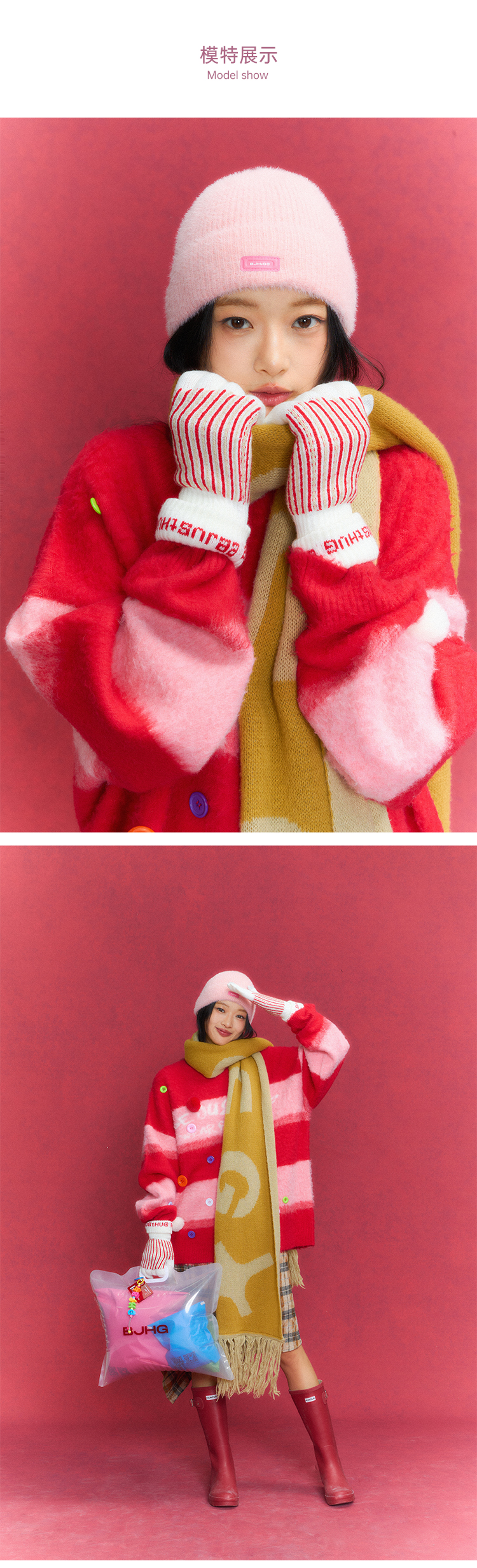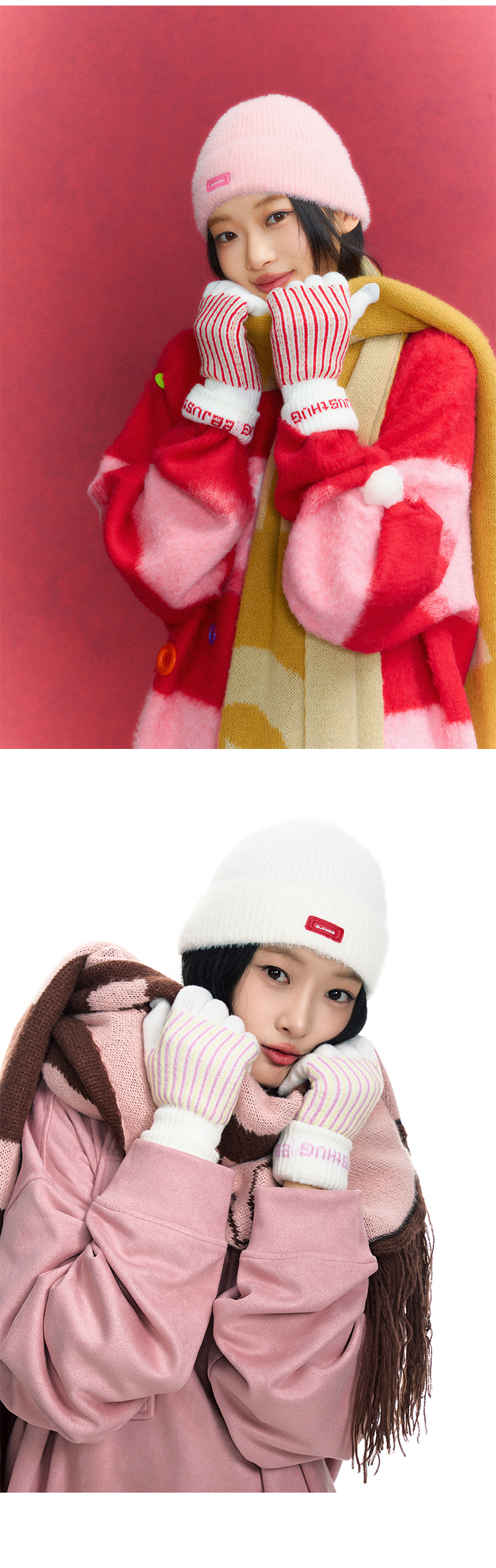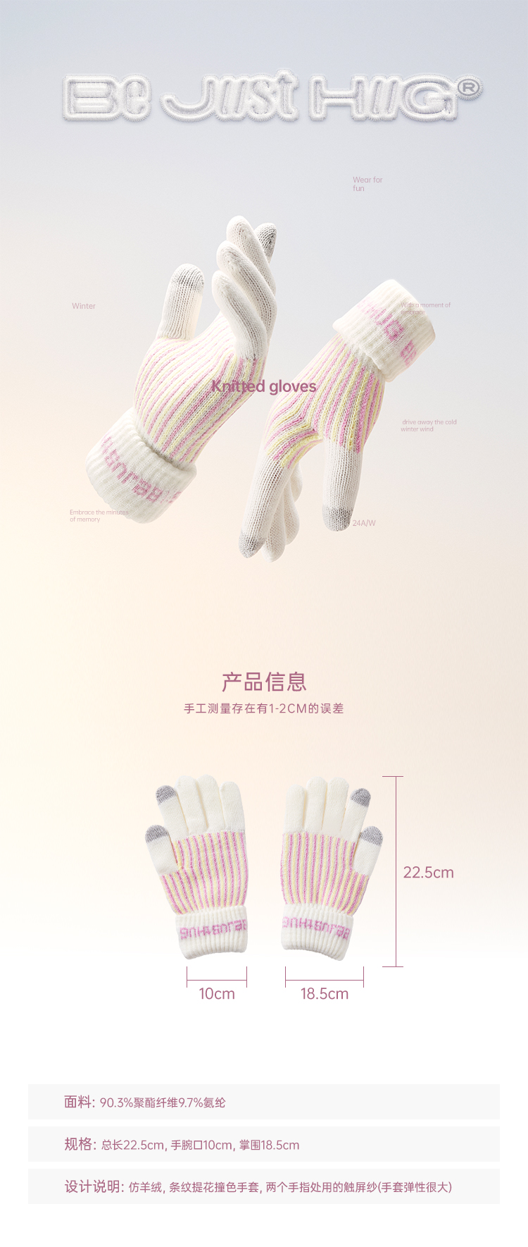 BJHG不计后果条纹提花撞色手套男女同款冬季仿羊绒加绒加厚可触屏