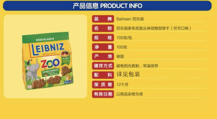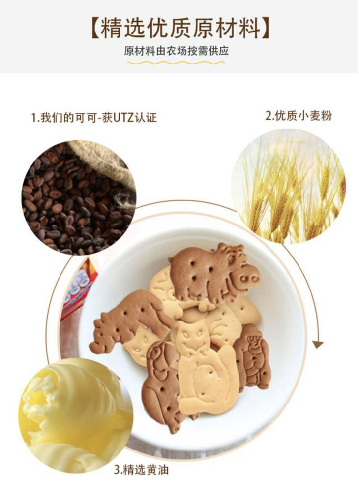 百乐顺丛林动物型可可饼干100g