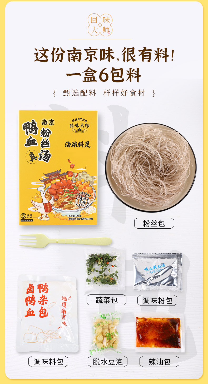 回味大师鸭状元鸭血粉丝汤经典原味盒装173g