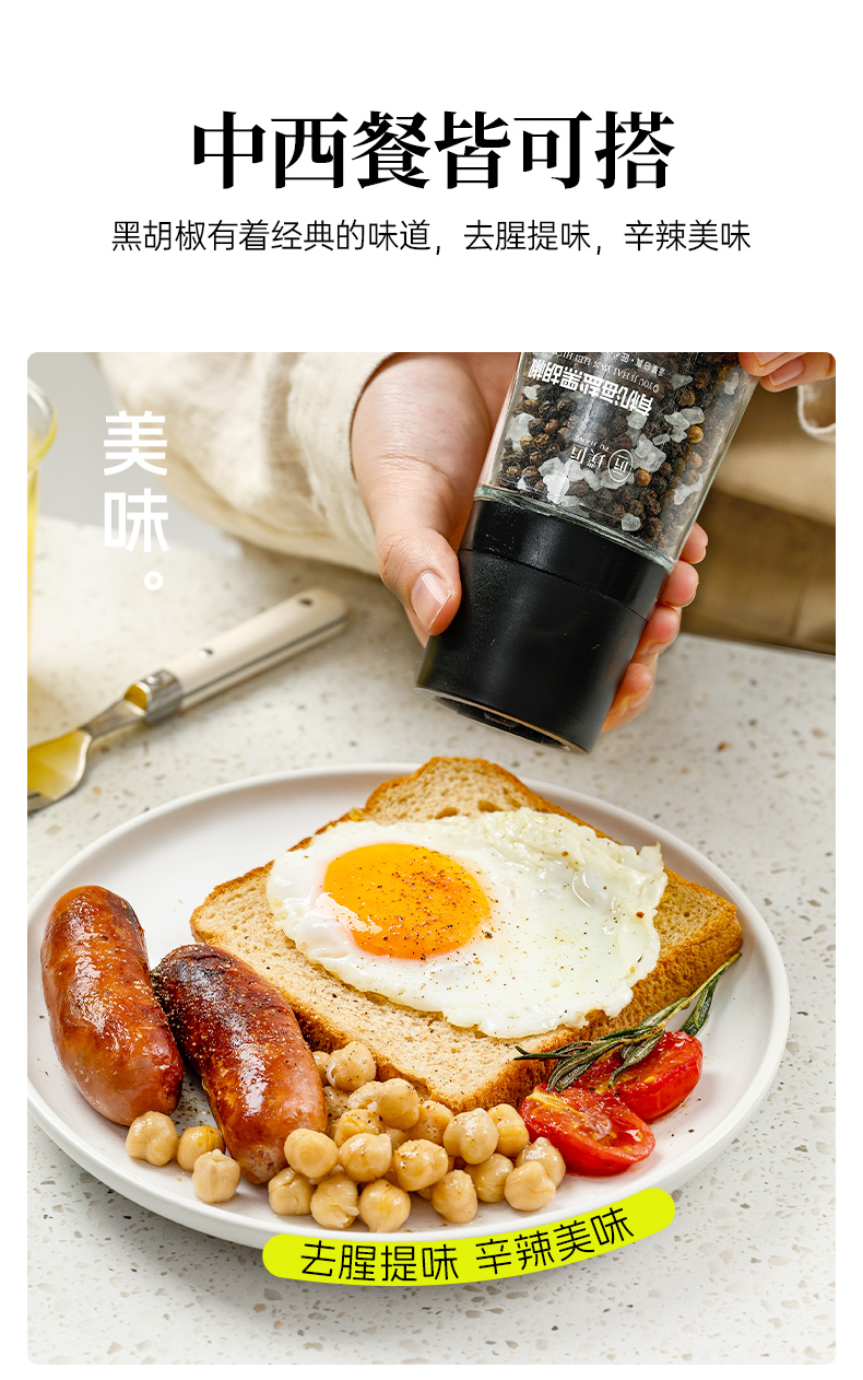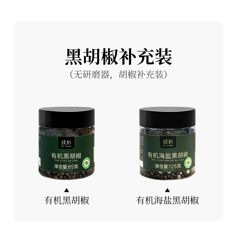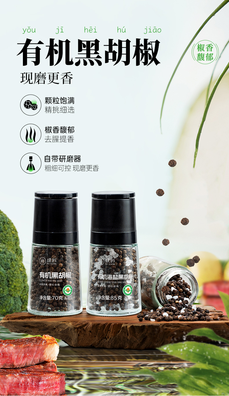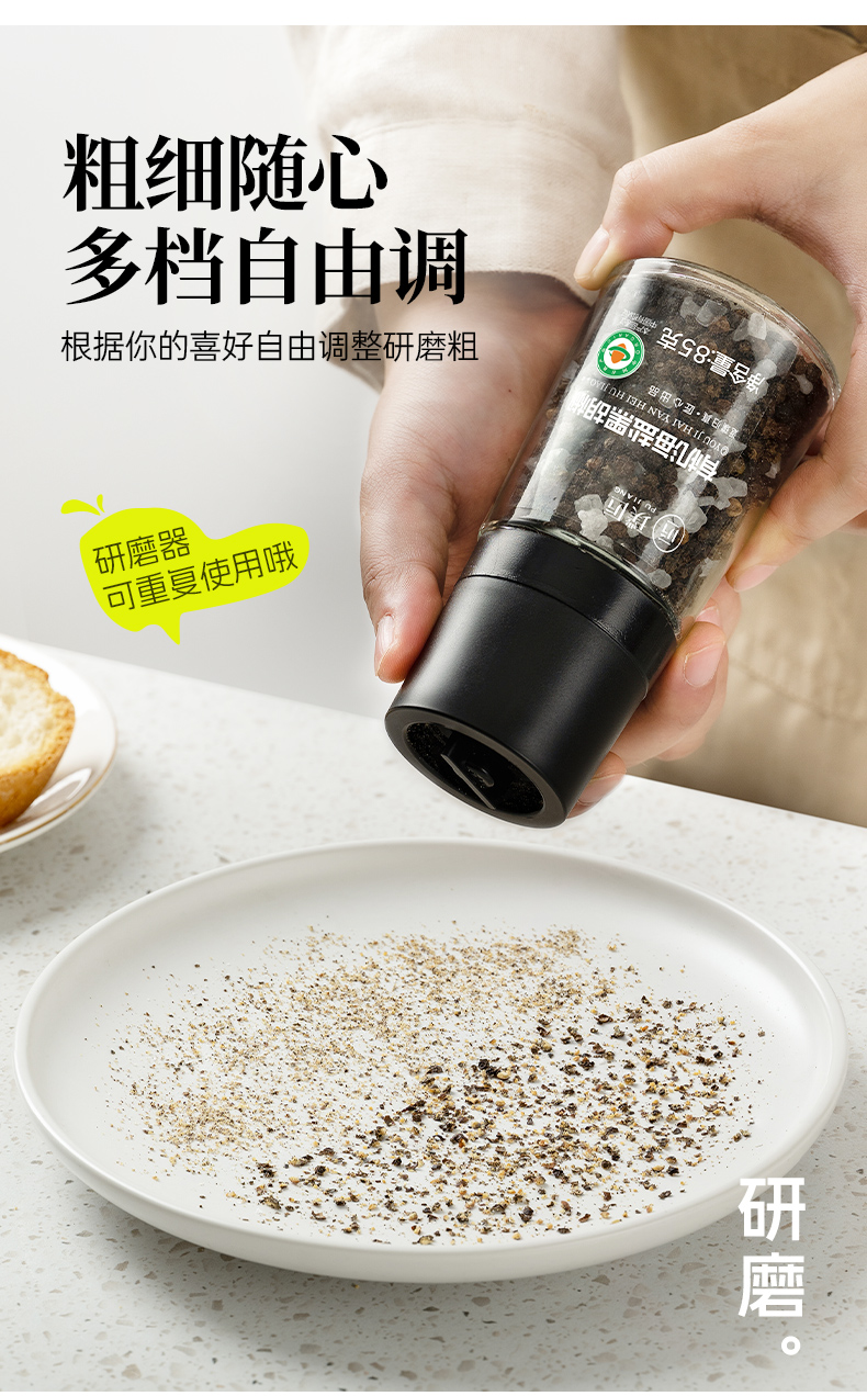 璞匠有机黑胡椒颗粒带研磨器胡椒粉瓶装健身牛排意面调味料