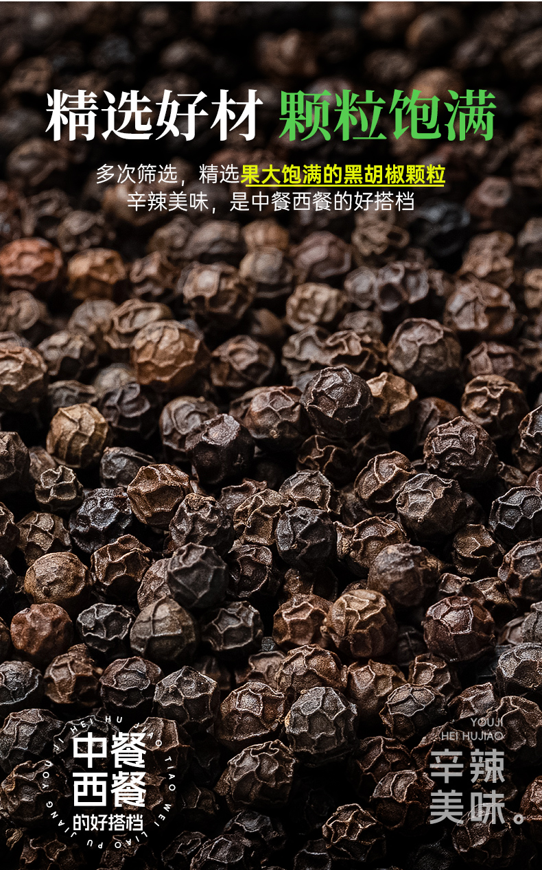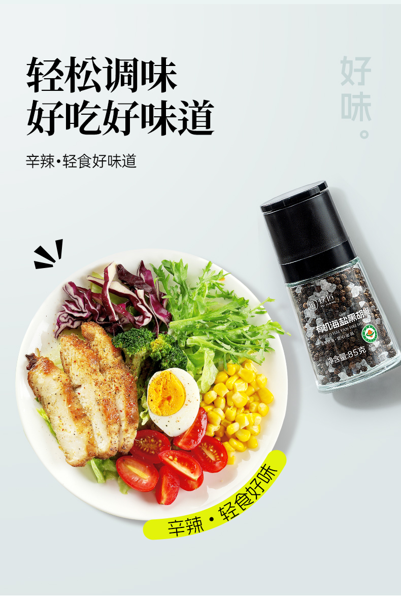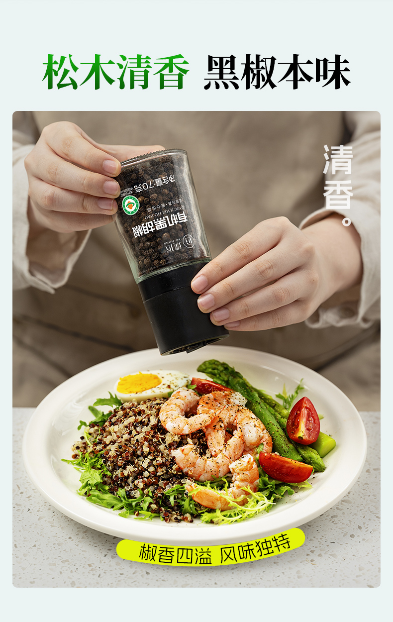 璞匠有机黑胡椒颗粒带研磨器胡椒粉瓶装健身牛排意面调味料
