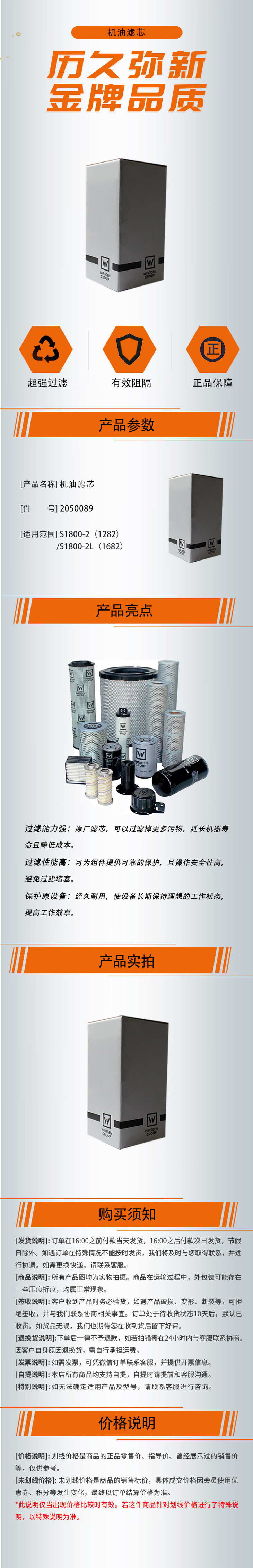 【机油滤芯2050089】 适用于S1800-2(1282)/S1800-2L(1682)