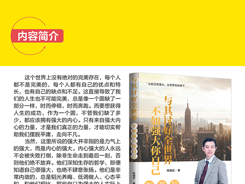 《与其讨好全世界,不如强大你自己》以心理学知识为基础,从各个角度为读者朋友们剖析,如何才能战胜人生中不期而至的挫折和苦难,使我们成为人生中真正的强者。