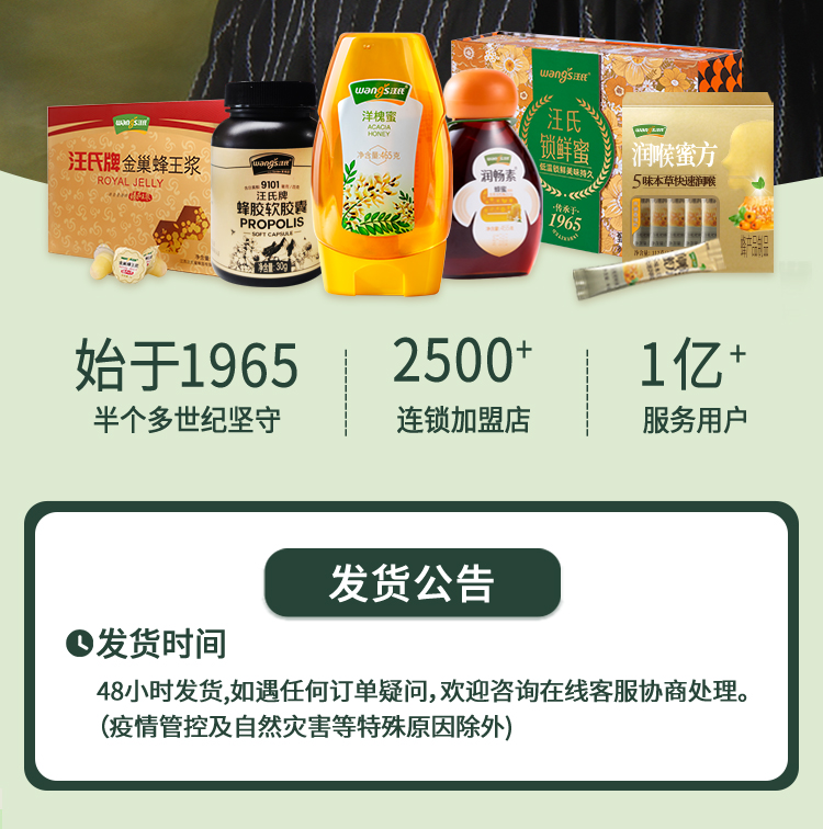 汪氏 新鲜蜂王浆500g 滋补软黄金