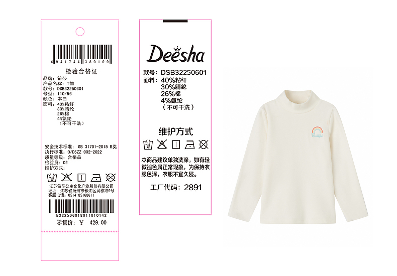 笛莎童装女童T恤2022冬季新款中大童儿童T恤
