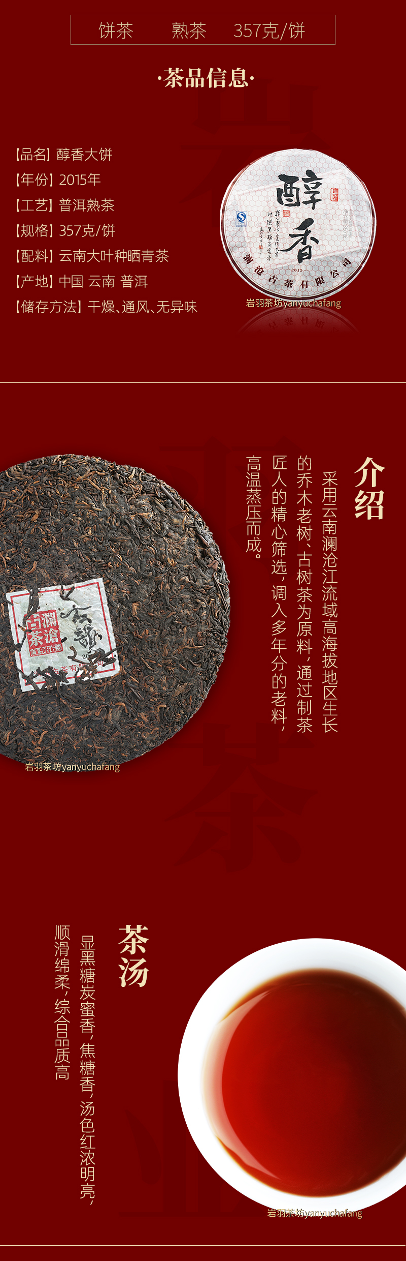 澜沧古茶2015年醇香大饼普洱茶熟茶云南茶叶老树古树