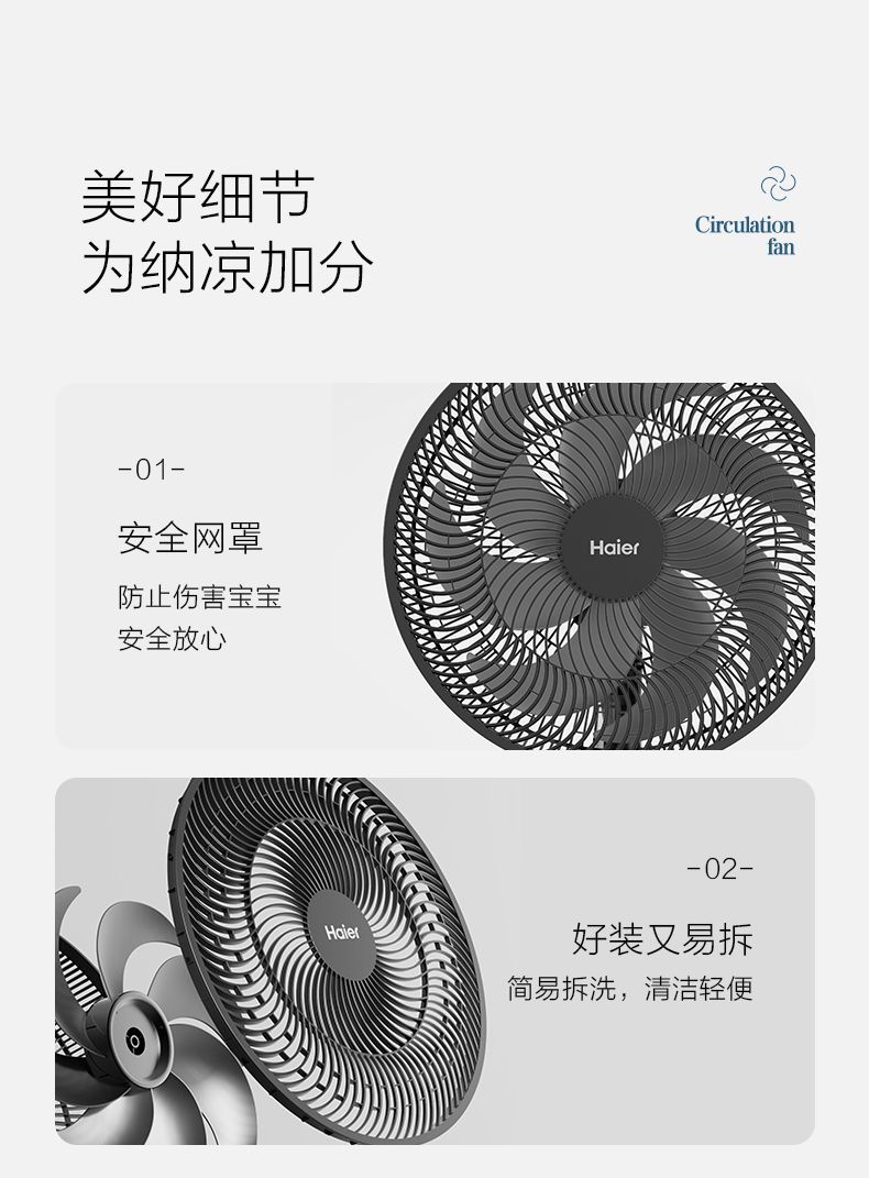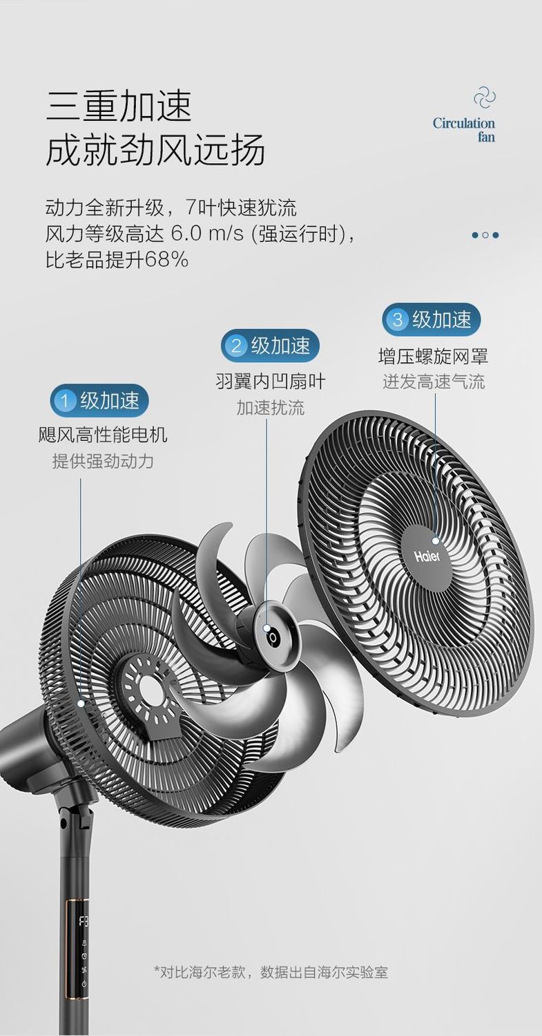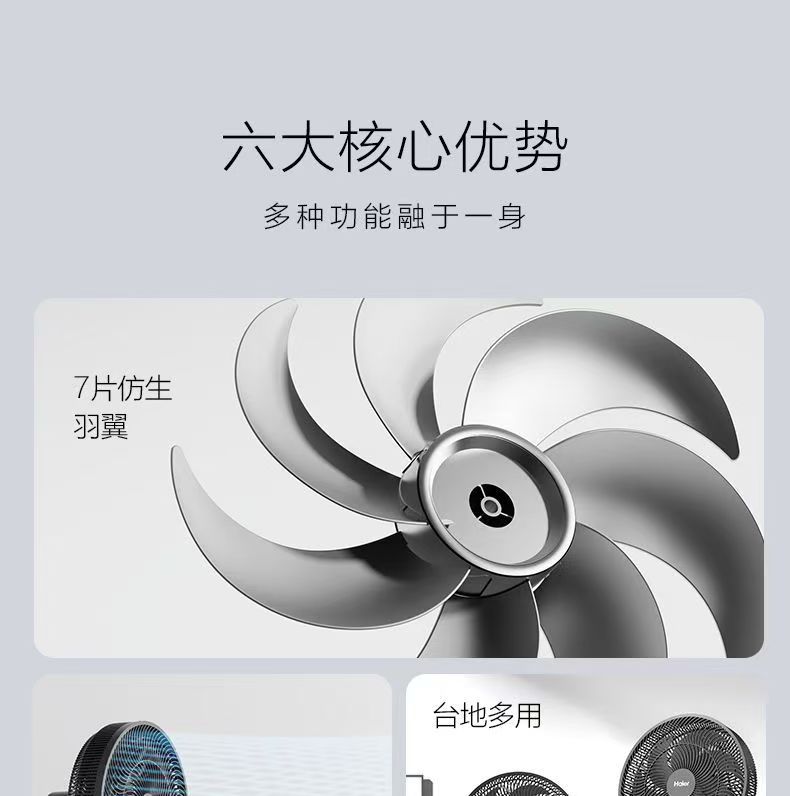 海尔七叶电风扇落地扇家用大风力台立式强力节能摇头