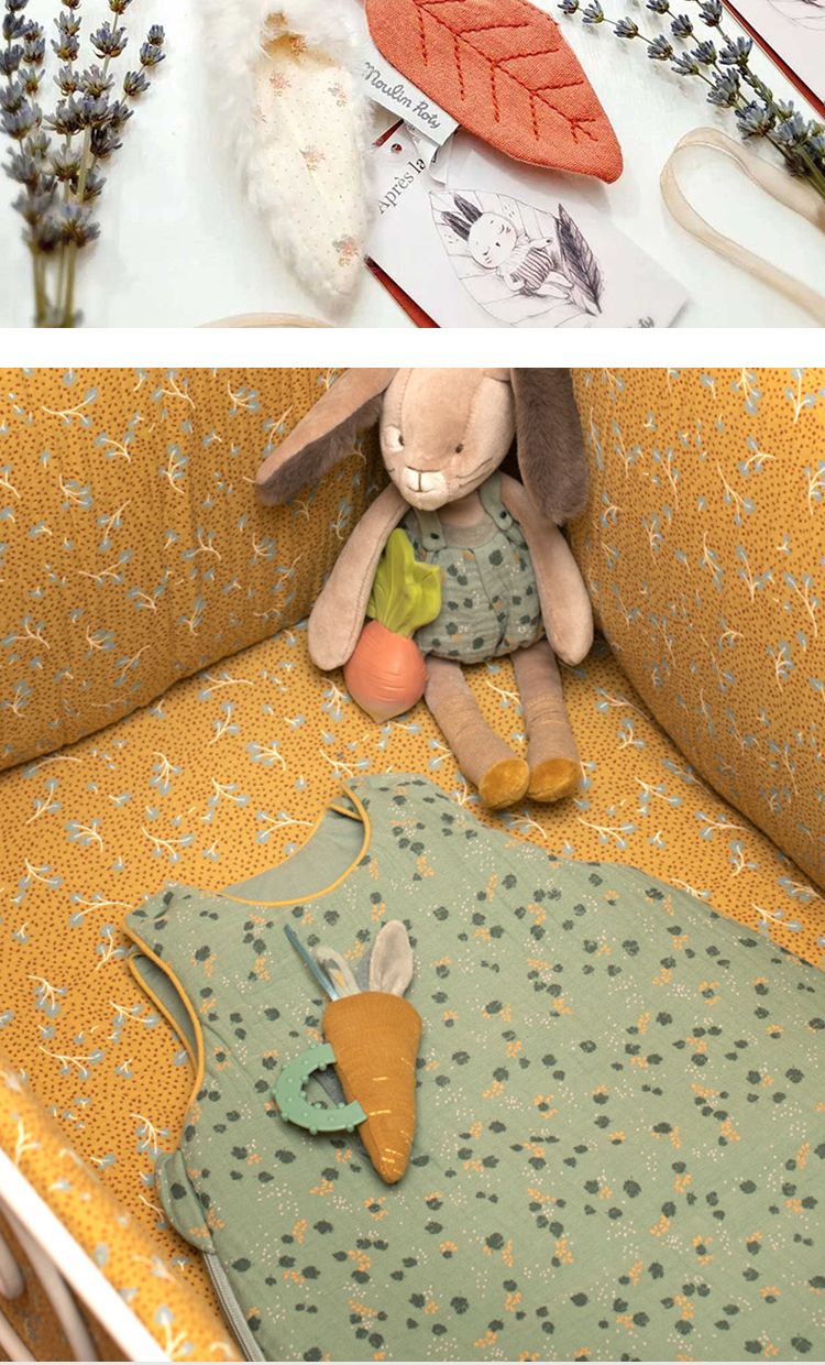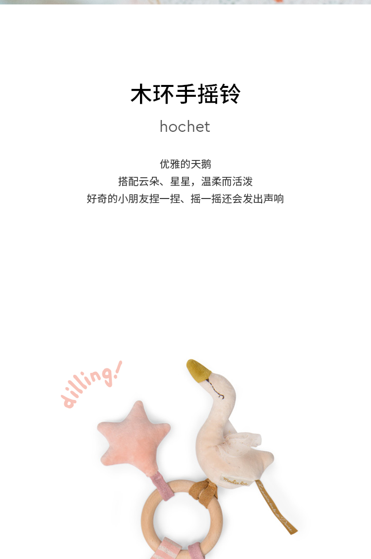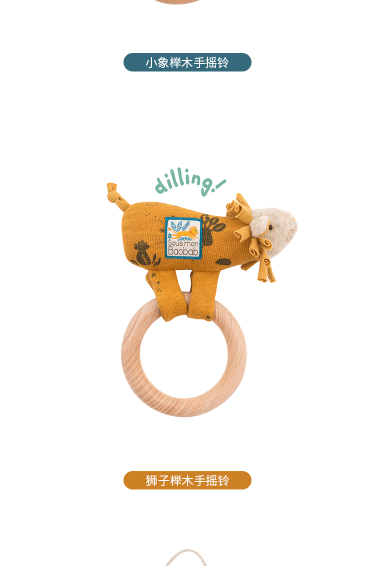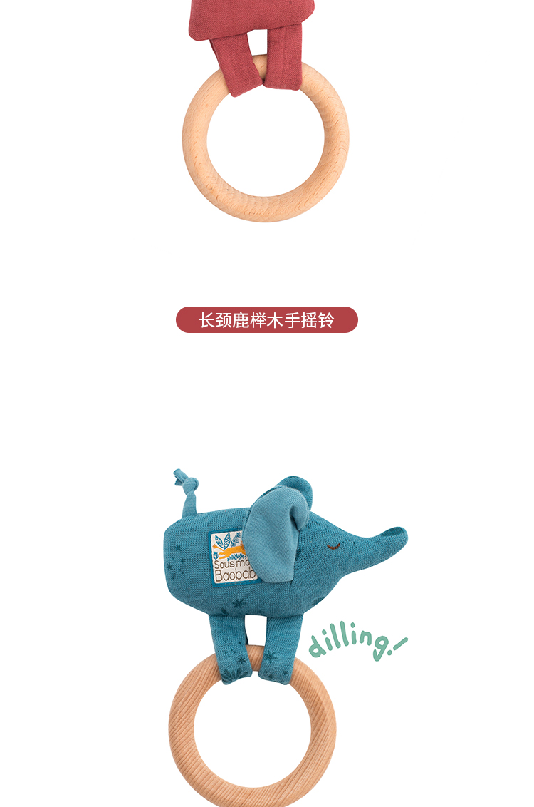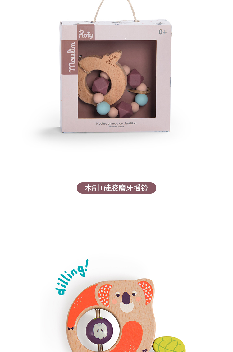 Moulin Roty 橘黄兔木环 手摇铃 适合0岁+ 可悬挂 三只邦尼兔系列 法国品牌-678009