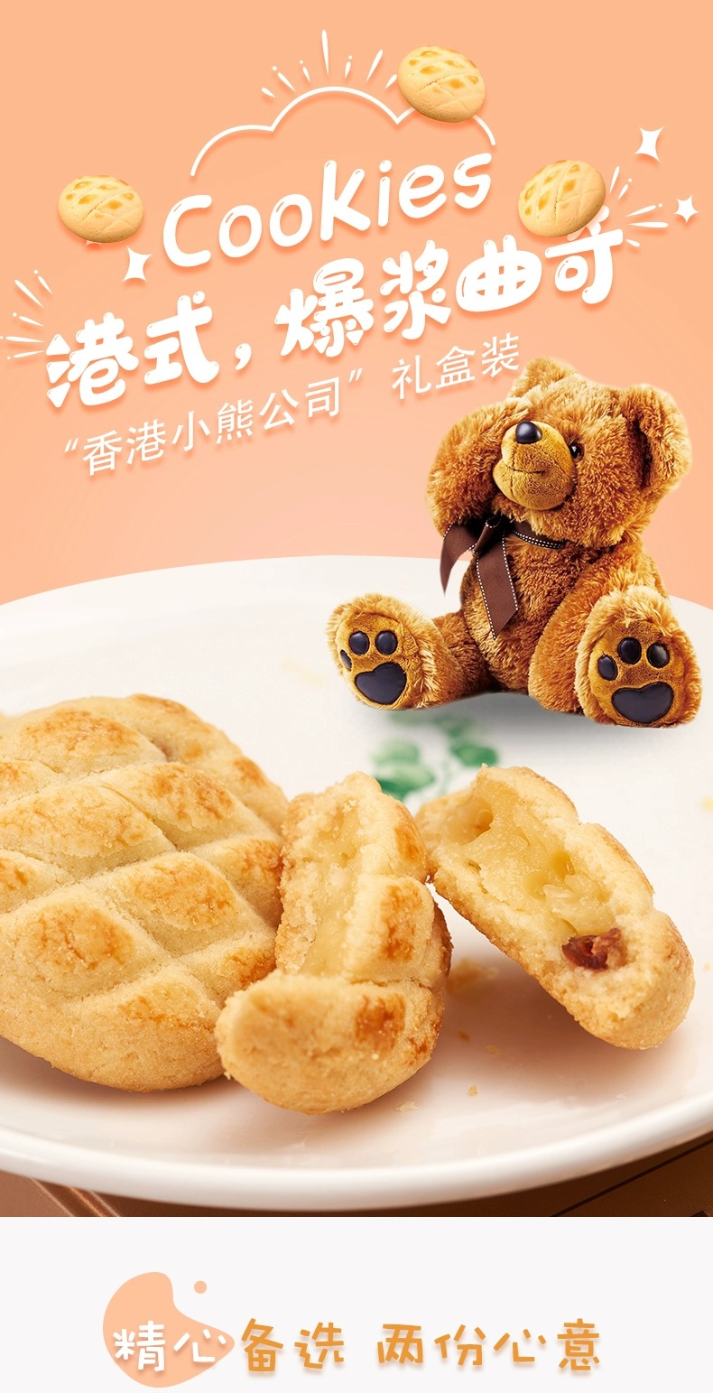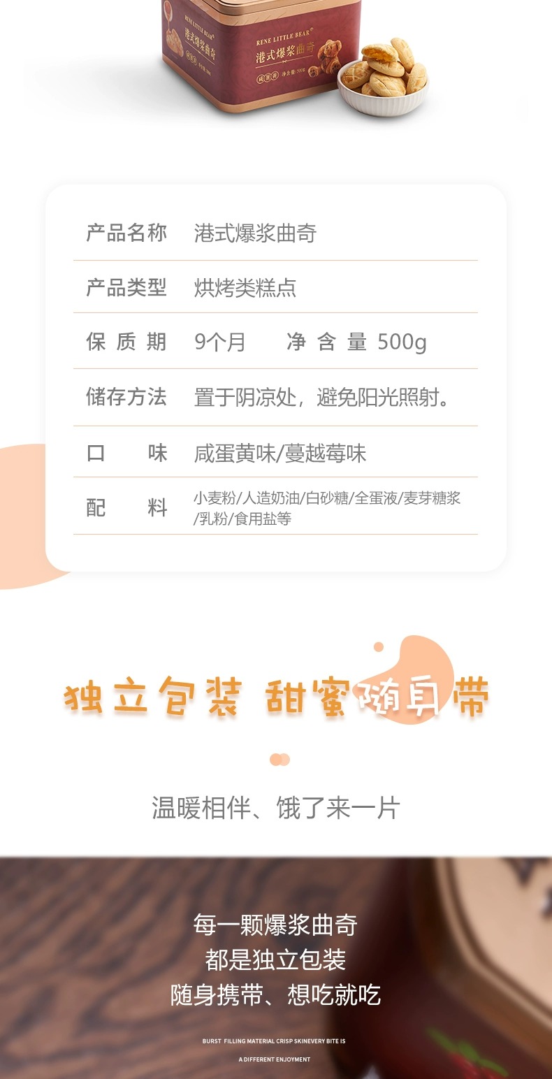 Rene Little Bear 香港小熊港式爆浆曲奇 咸蛋黄/蔓越莓 500g(配拎袋)