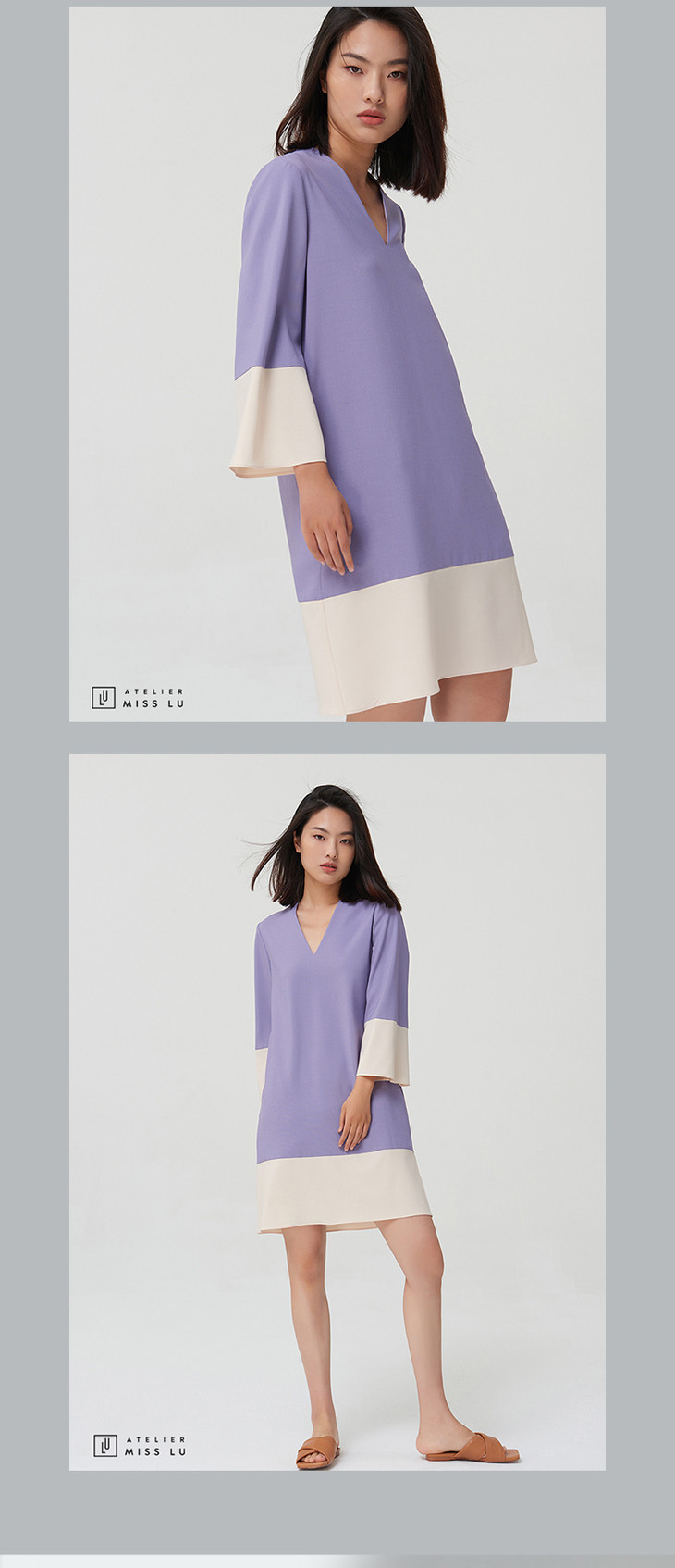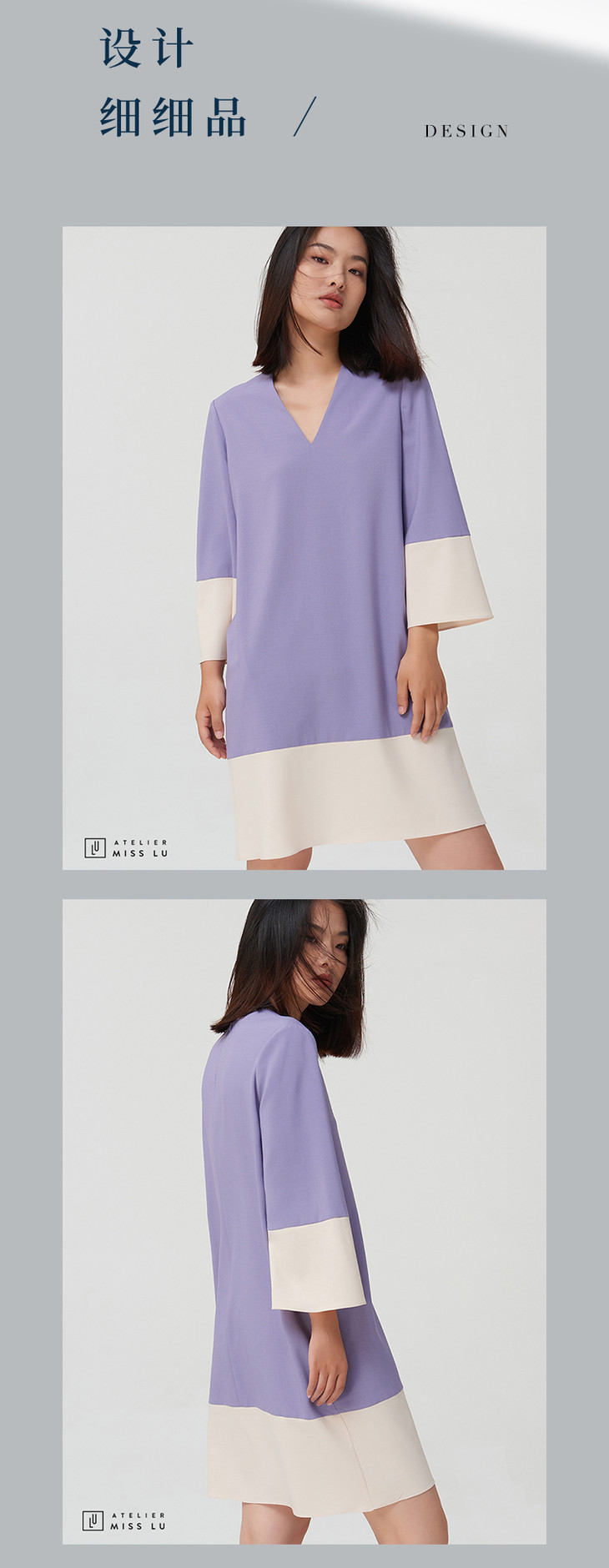 AtelierMissLu-【优雅之上】 香芋紫拼色简洁款连身裙