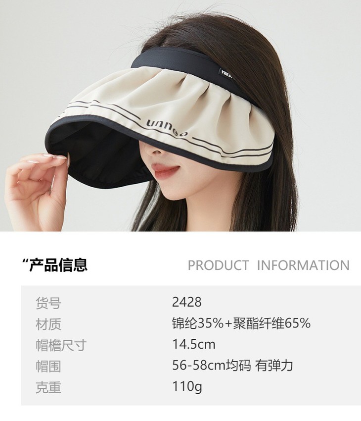 韩国两用发箍黑胶防晒贝壳帽空顶帽JCM2428