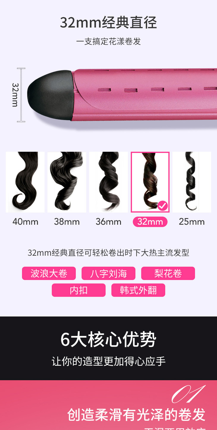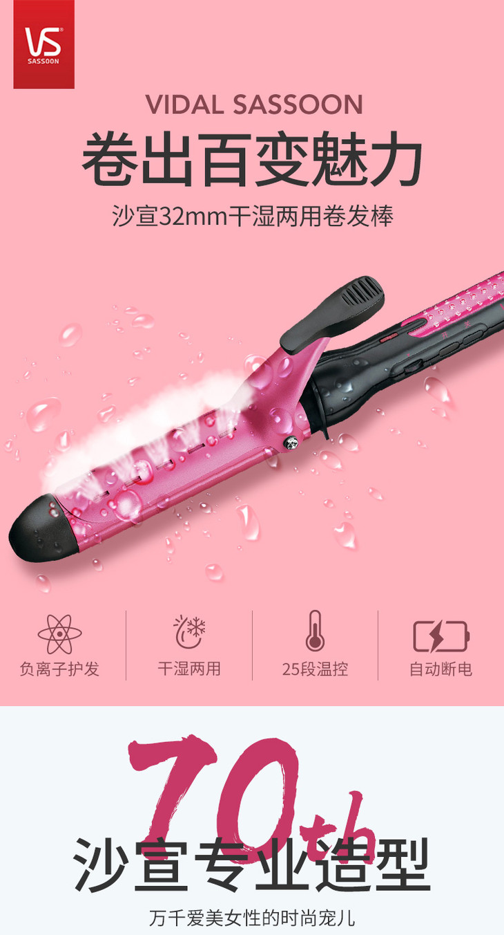 沙宣(VS)卷发棒 干湿两用32MM陶瓷涂层卷发器 VSCD119PICN