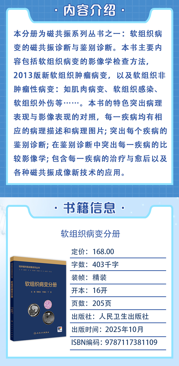软组织病变分册 临床磁共振成像系列丛书 程晓光 于爱红 丁宜 主编 本书主要内容包括软组织病变的影像学检查方法 人民卫生出版社