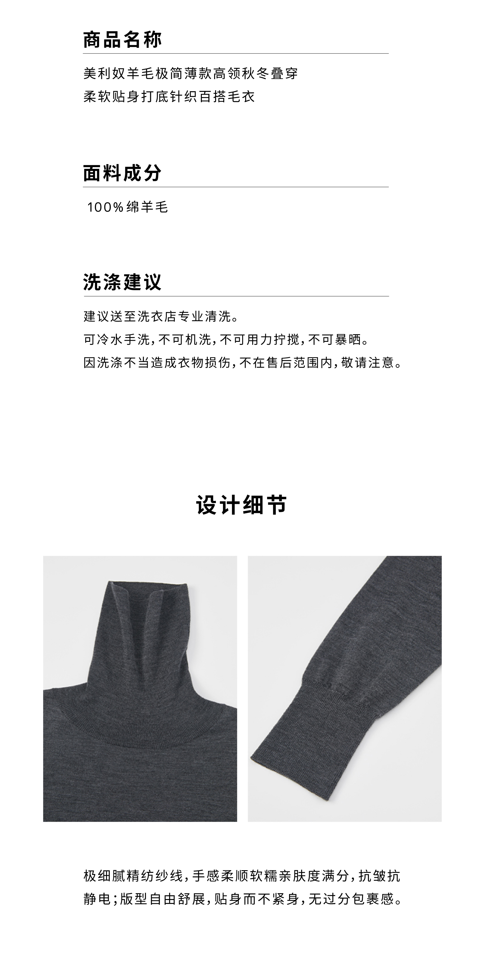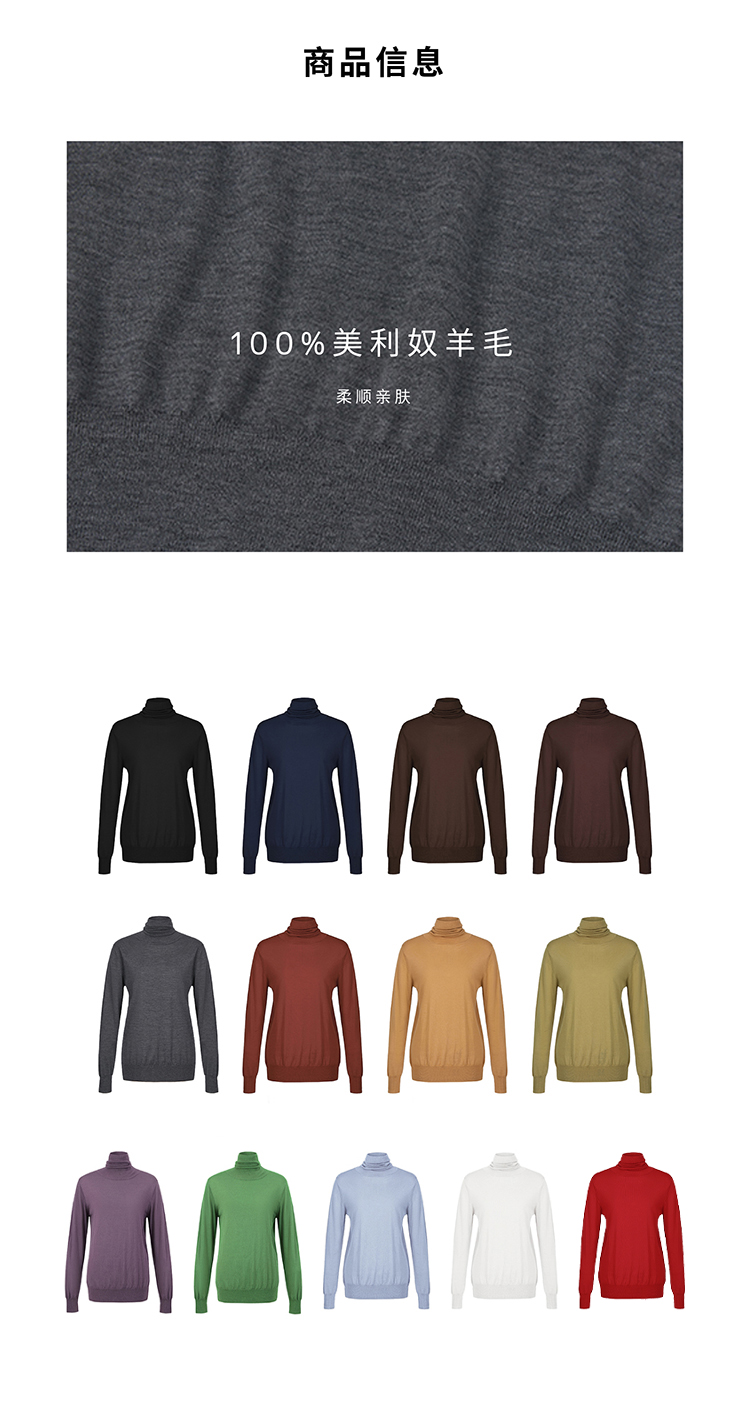 HIDEMI 秋冬叠穿必备 美利奴羊毛薄款高领打底