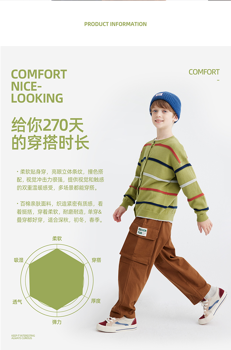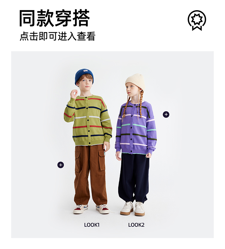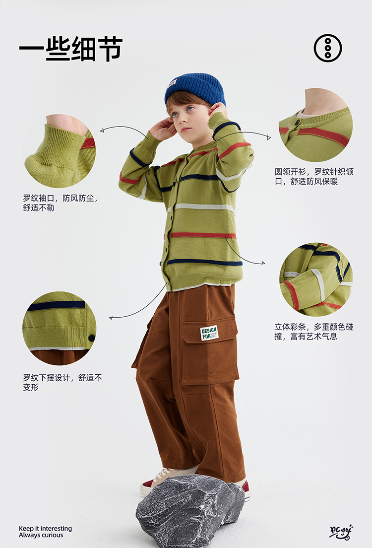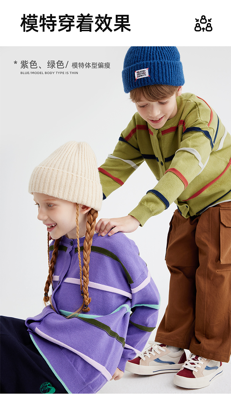 【32s柔软棉纱】儿童撞色条纹开衫毛衣 PQMY2404