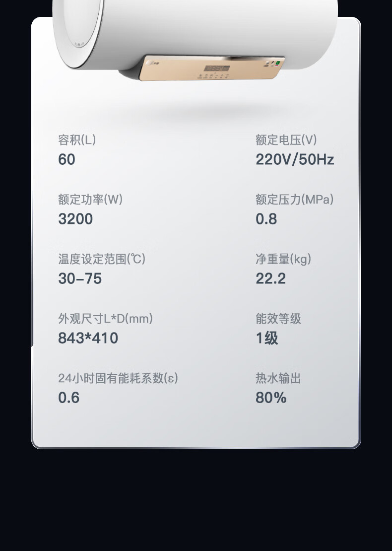 华帝(VATTI)60升 电热水器 3200W变频速热 智能遥控 多重安防 DDF60-DJ3