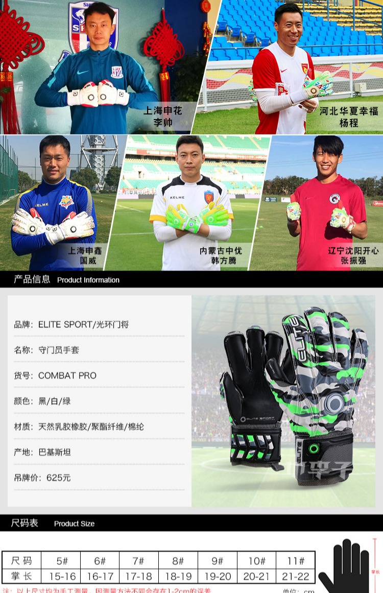 小李子:专柜正品ELITE SPORT光环门将手套高端带可拆卸护指