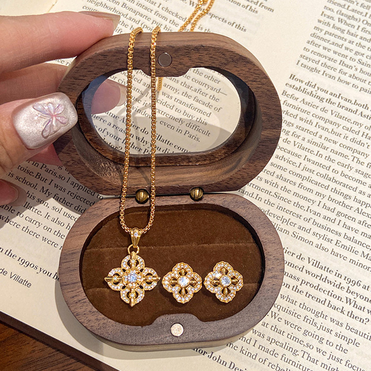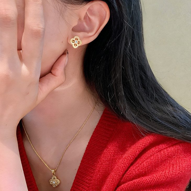 ✅四叶草金饰套装 以纤细镂空金框勾勒四叶草轮廓 裹着细碎钻饰,造型秀气轻盈 精致感藏在每一处细密细节里,不厚重却足够亮眼 沙金星月吊坠,哑光沙金质感的小巧星星 搭配迷你星月装饰与纤细绳链 细节钻饰低调不张扬,圆润造型透着轻盈的精致感 小巧红珠配简约细金圈,珠体圆润、金框纤细 款式极简却贴合耳畔,是日常不突兀的精致小点缀