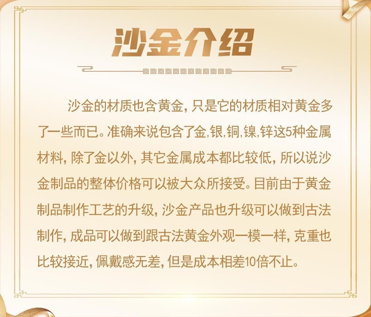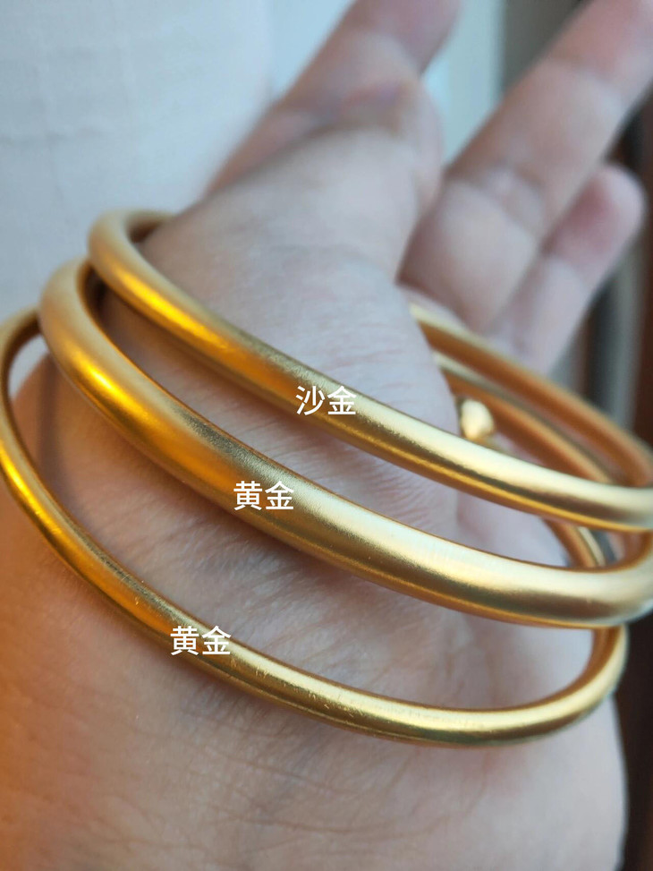 黄金的区别看这里 ✅品质过硬! 质地比黄金更加坚硬! 不用担心磕磕碰碰导致饰品变形、损坏! ✅沙金材质厚重,保色时间长 ✅耐脏耐看,也不会容易出现刮痕