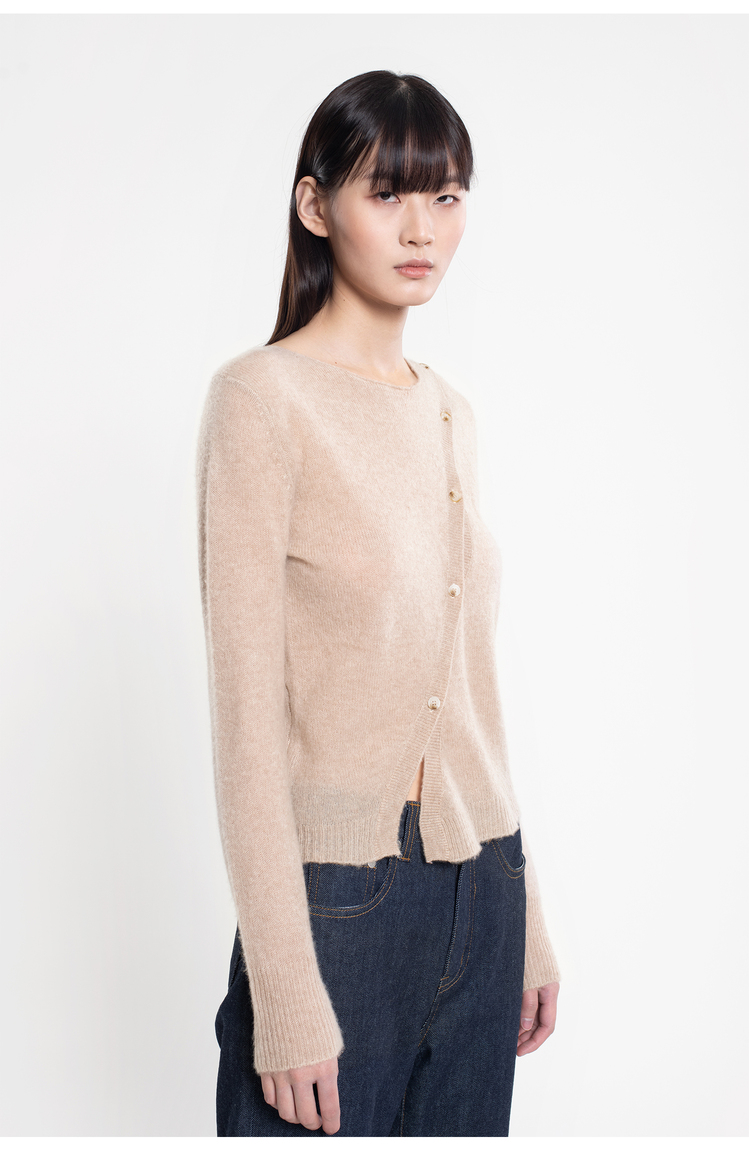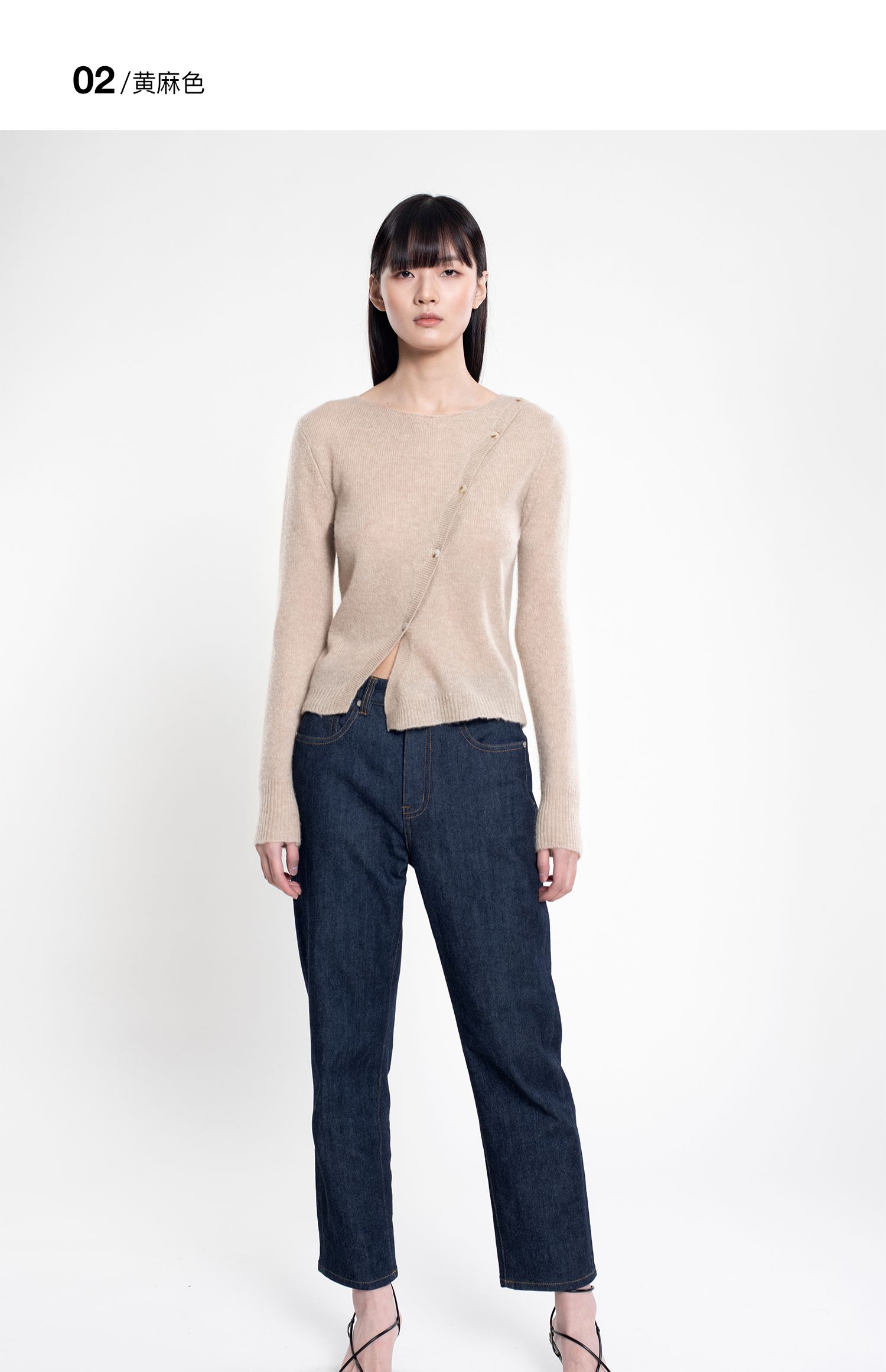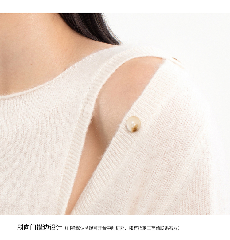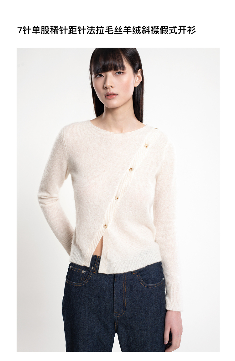 2022新款拉毛丝羊绒7针单股稀针斜襟假式开衫
