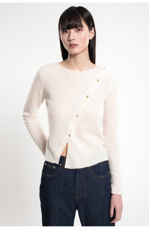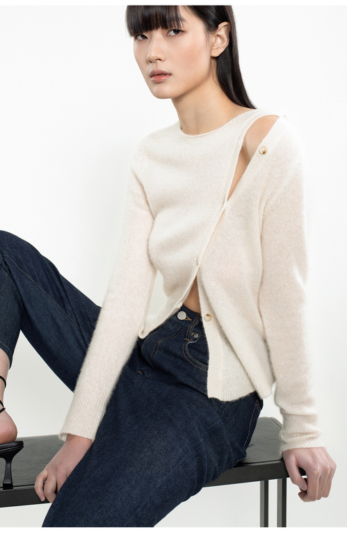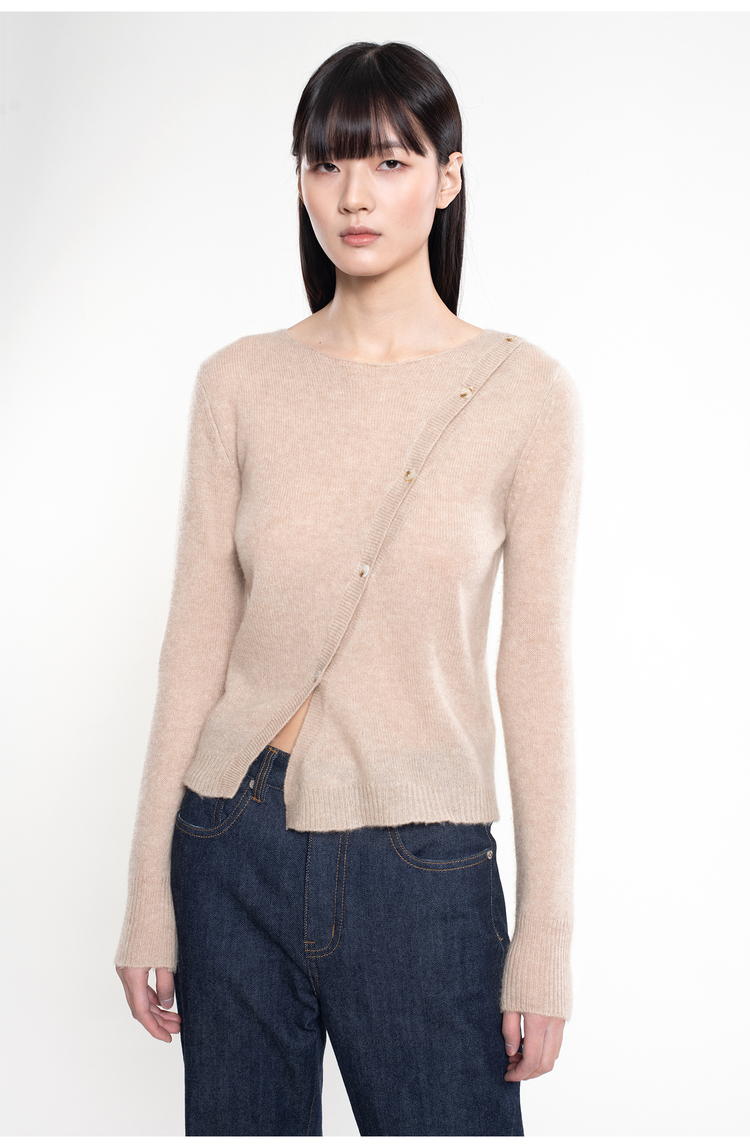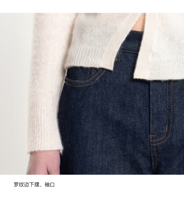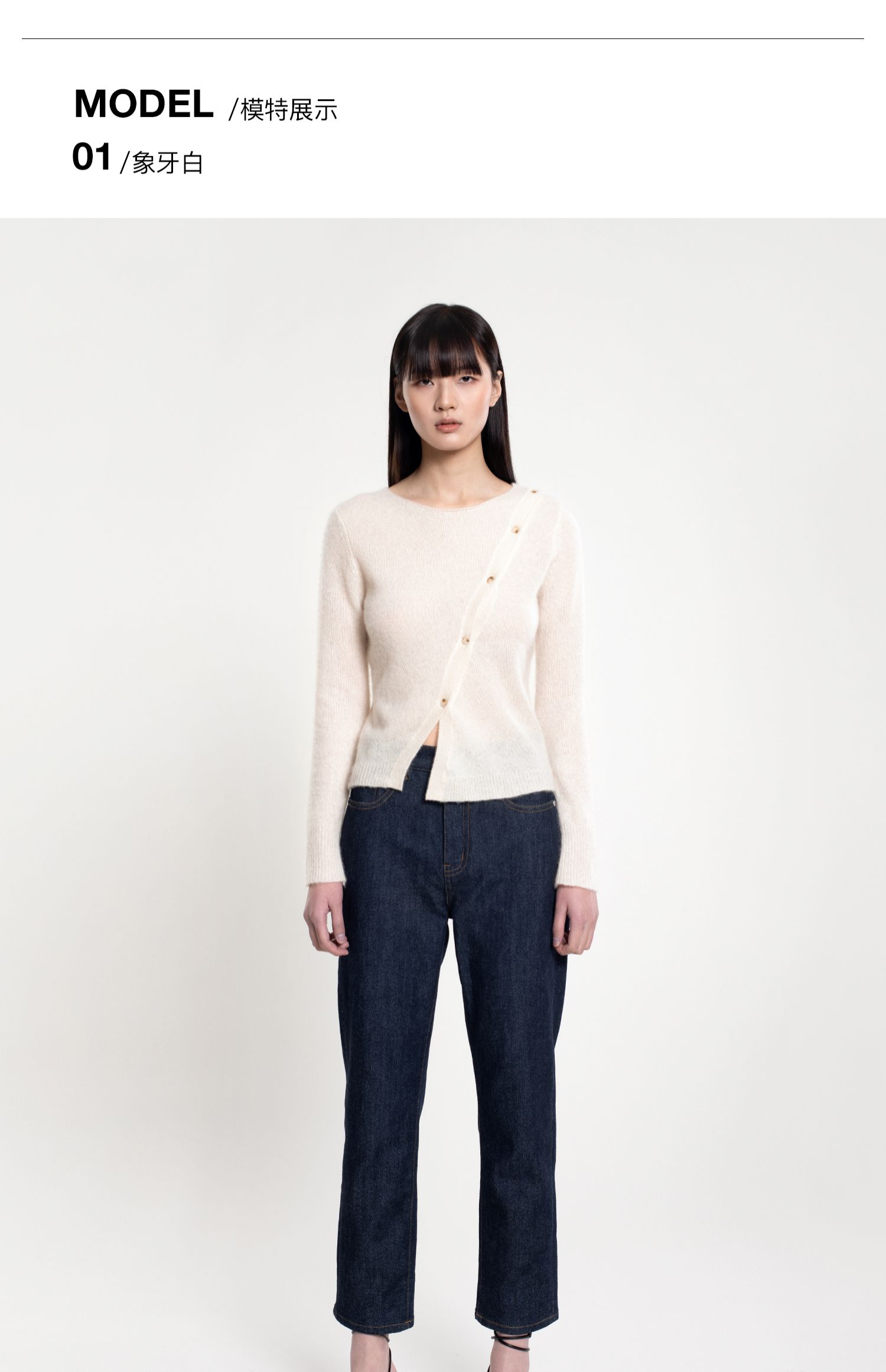 2022新款拉毛丝羊绒7针单股稀针斜襟假式开衫