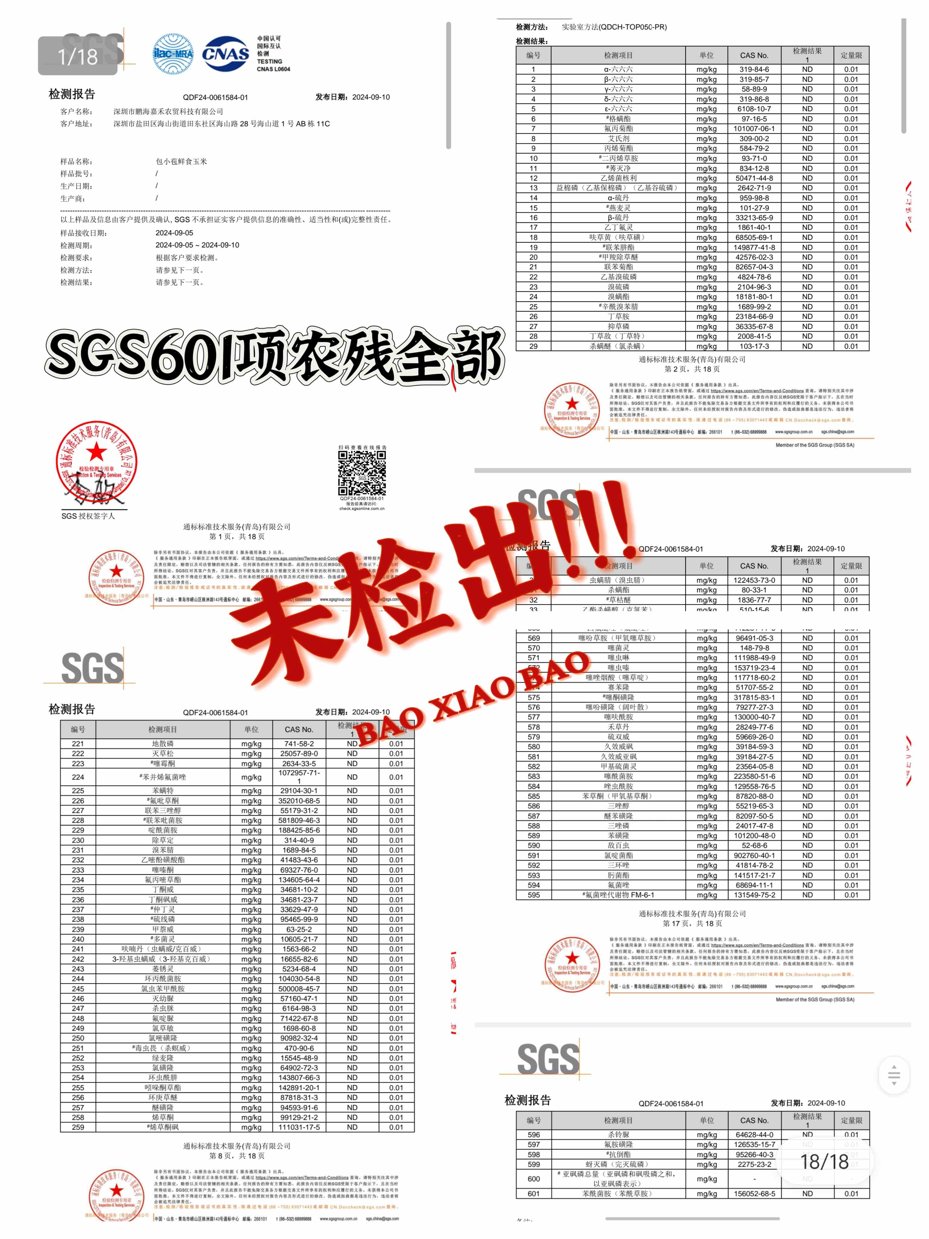 4、玉米通过SGS出口欧盟601项检测,农残全部未检出。