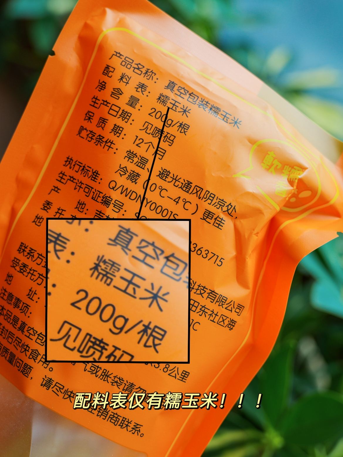 配料表上只有鲜糯玉米,再无其它