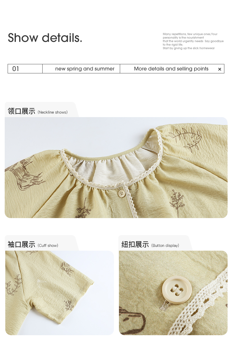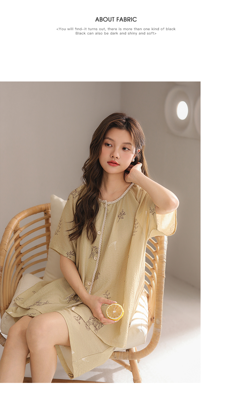 可人儿小众设计师新款泡泡绵女睡衣夏季短袖少女睡裙可外穿连衣裙