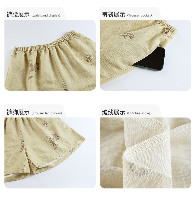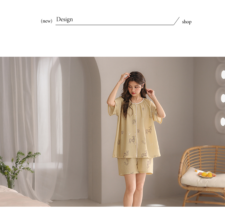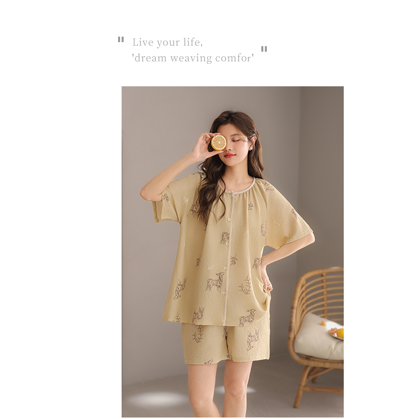 可人儿小众设计师新款泡泡绵女士睡衣夏季短袖可外出家居服三件套