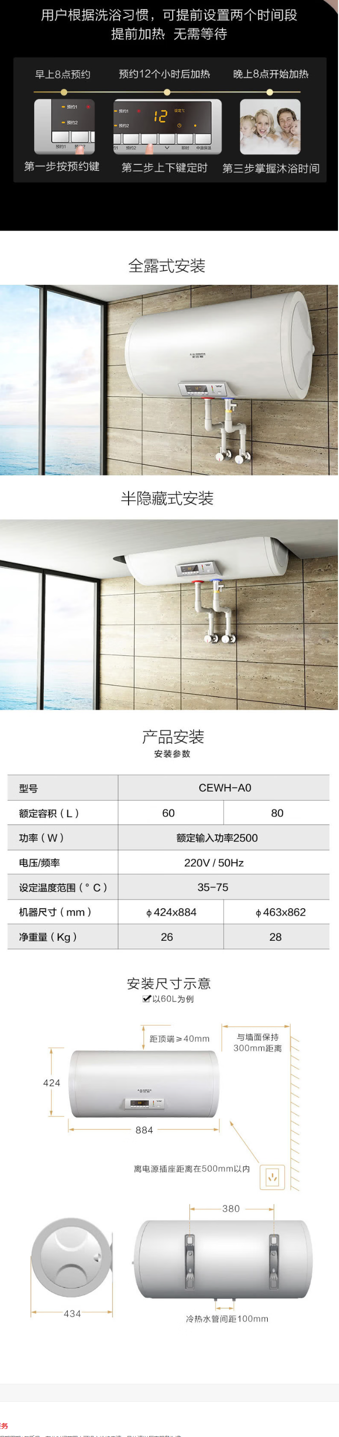 史密斯(509052)(A.O.SMITH)电热水器CEWH-80A0