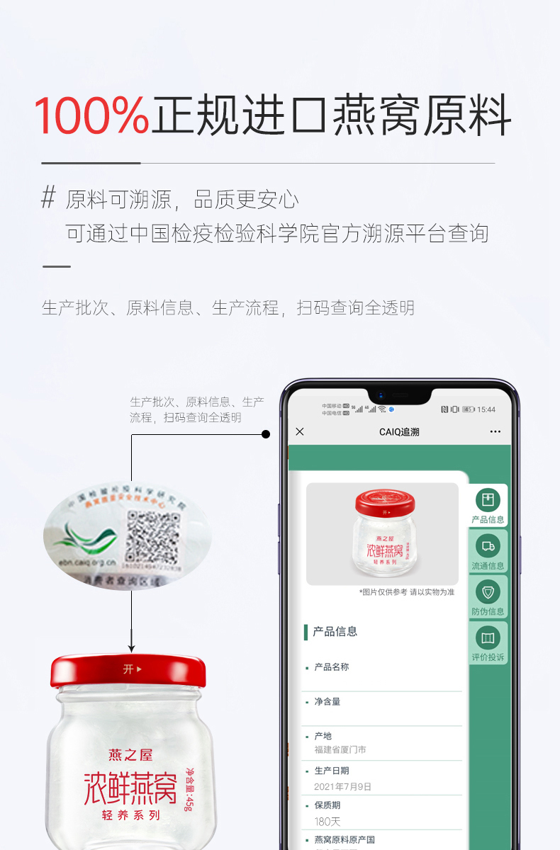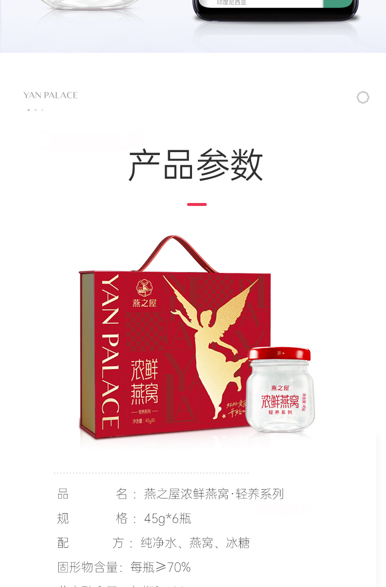 燕之屋浓鲜燕窝礼盒45g*6瓶/盒 即食常温 轻养系列 孕期滋补