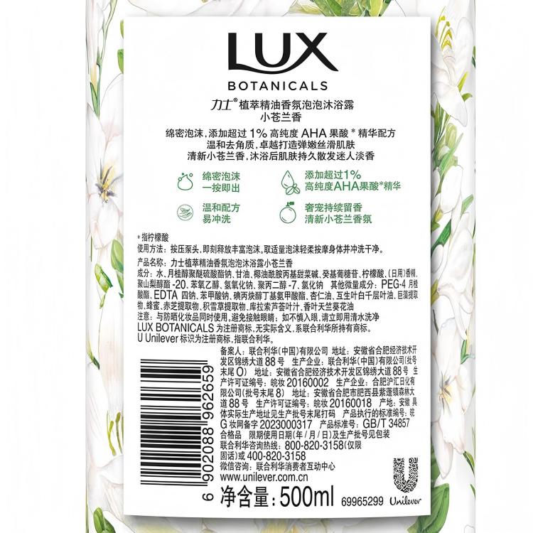 力士植萃精油香氛泡泡沐浴露 小苍兰香 500ml
