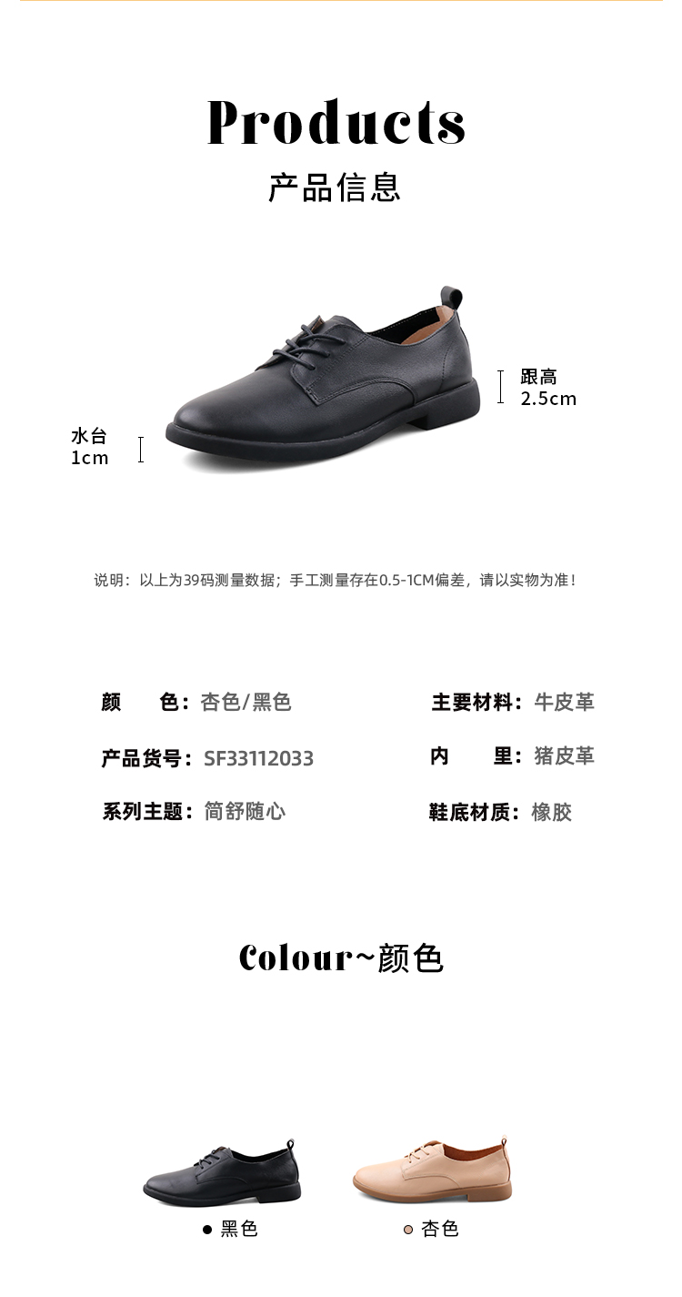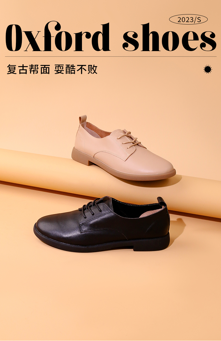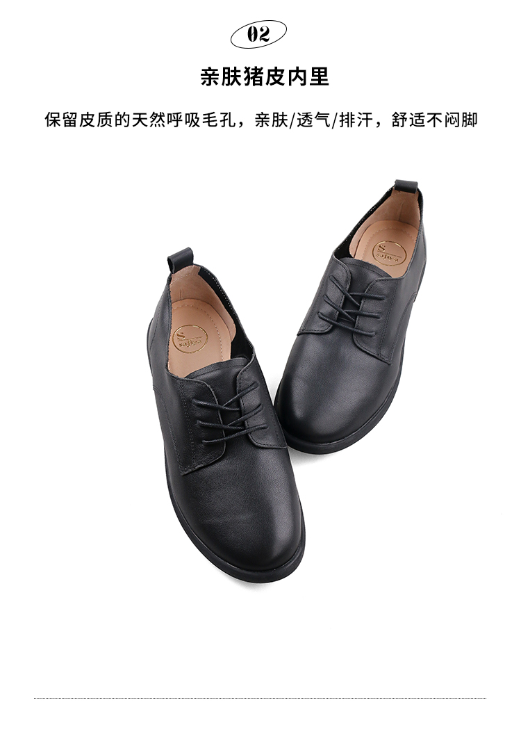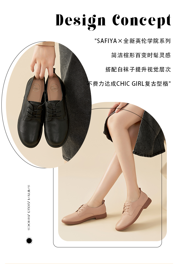 Safiya/索菲娅 2023秋季新品 学院风真皮圆头低跟系带深口牛津鞋小皮鞋 SF33112033