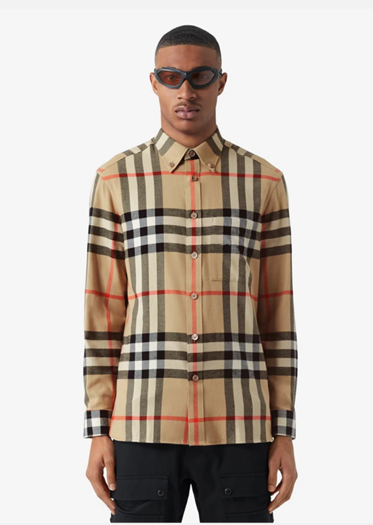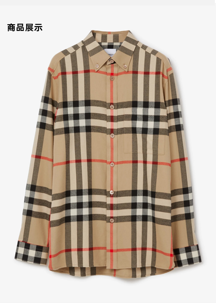 BURBERRY 巴宝莉 男士格纹棉质法兰绒长袖衬衫 格子 8064881 A7028
