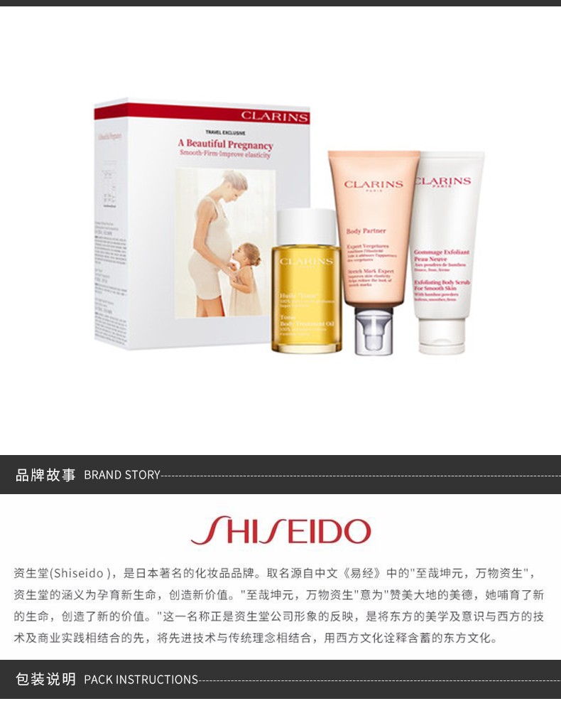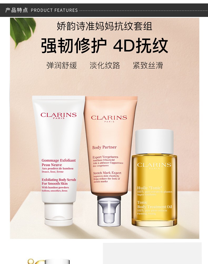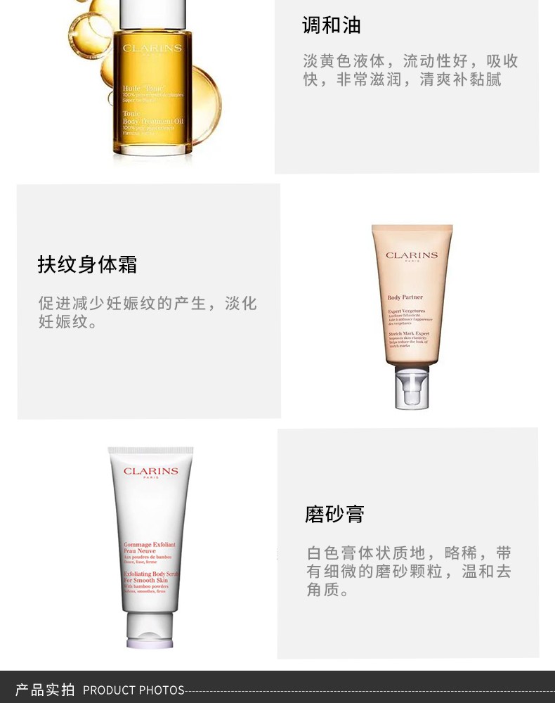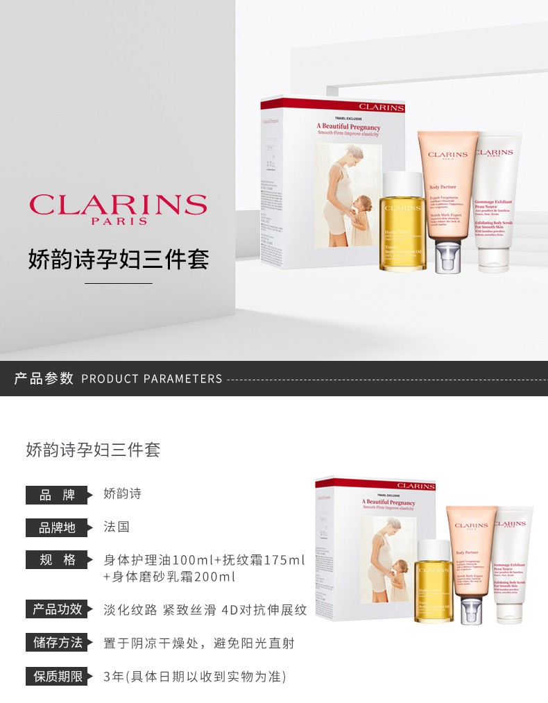 【香港直邮】CLARINS/娇韵诗 孕妇三件套(身体护理油100ML+扶纹霜175ML+身体磨砂乳霜200ML)