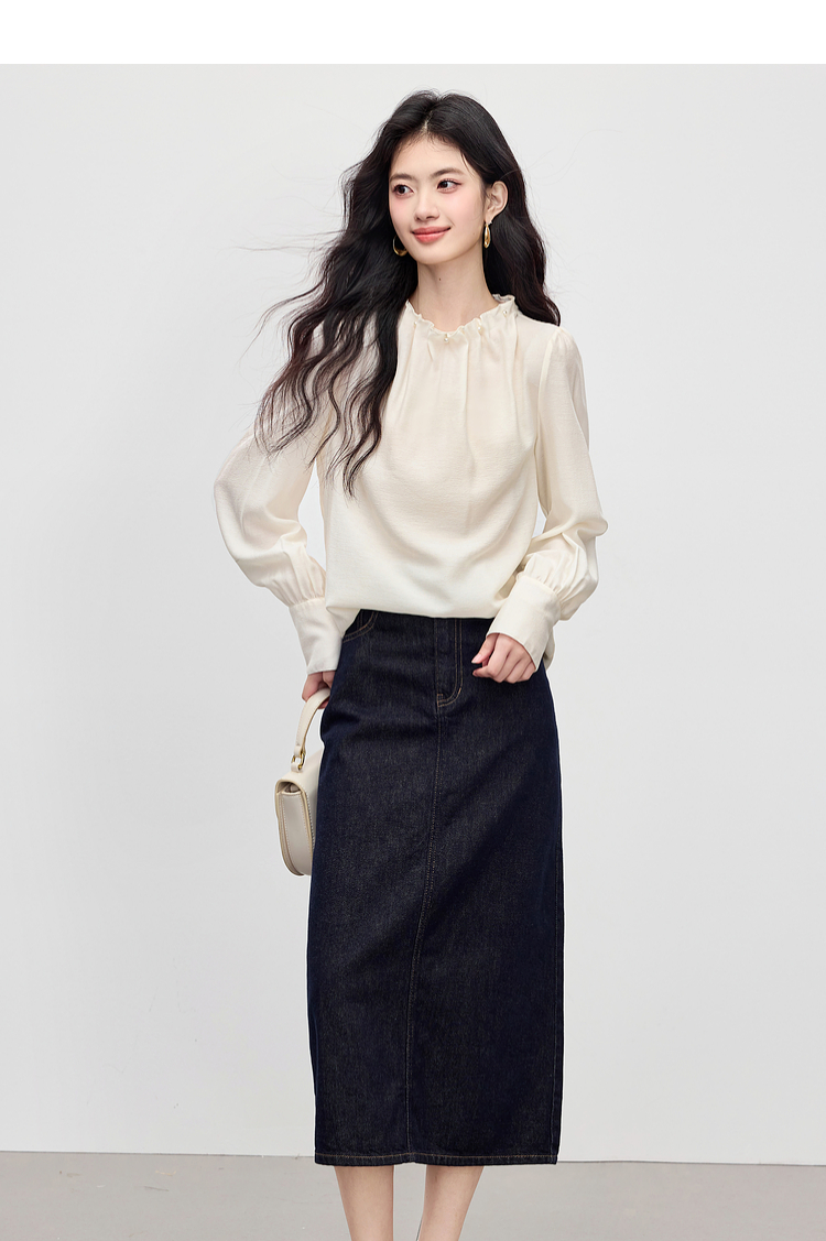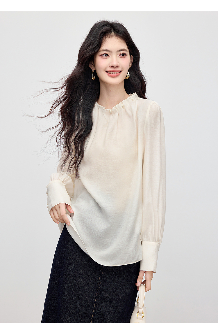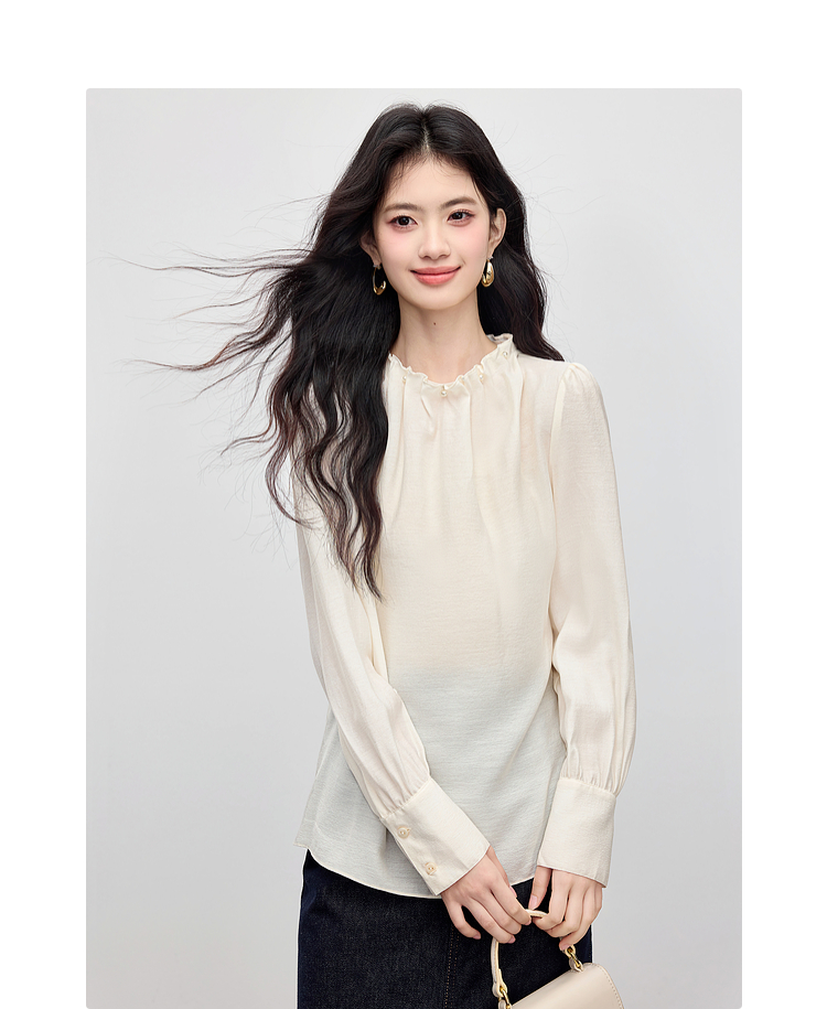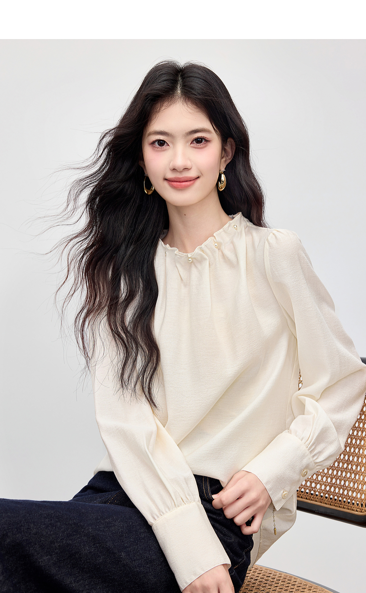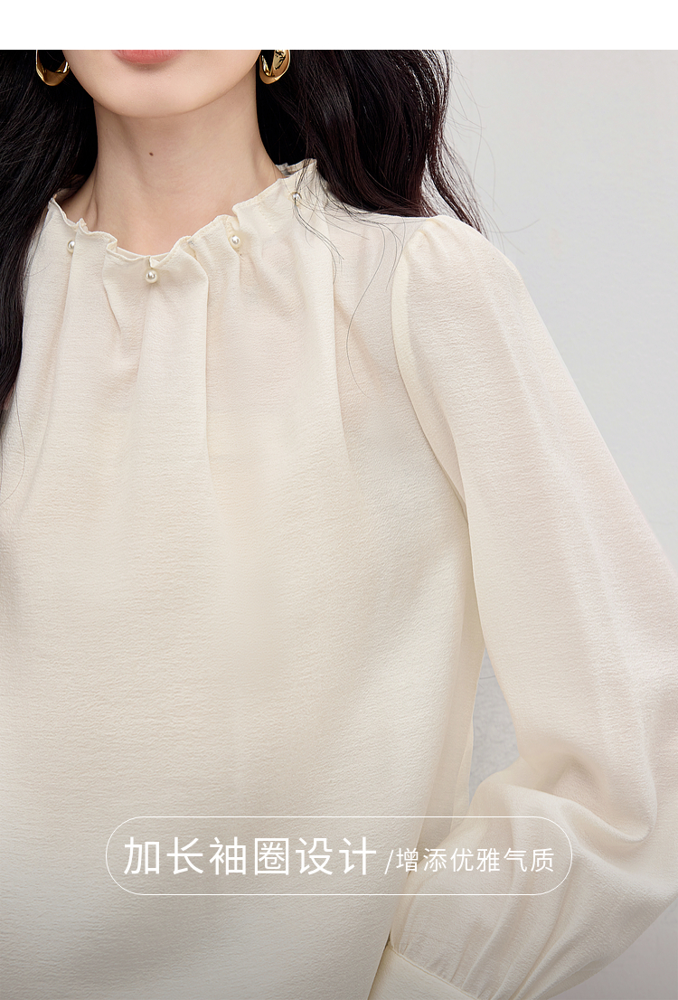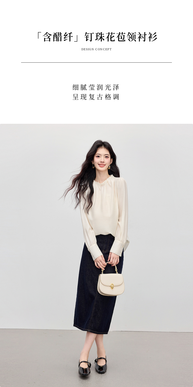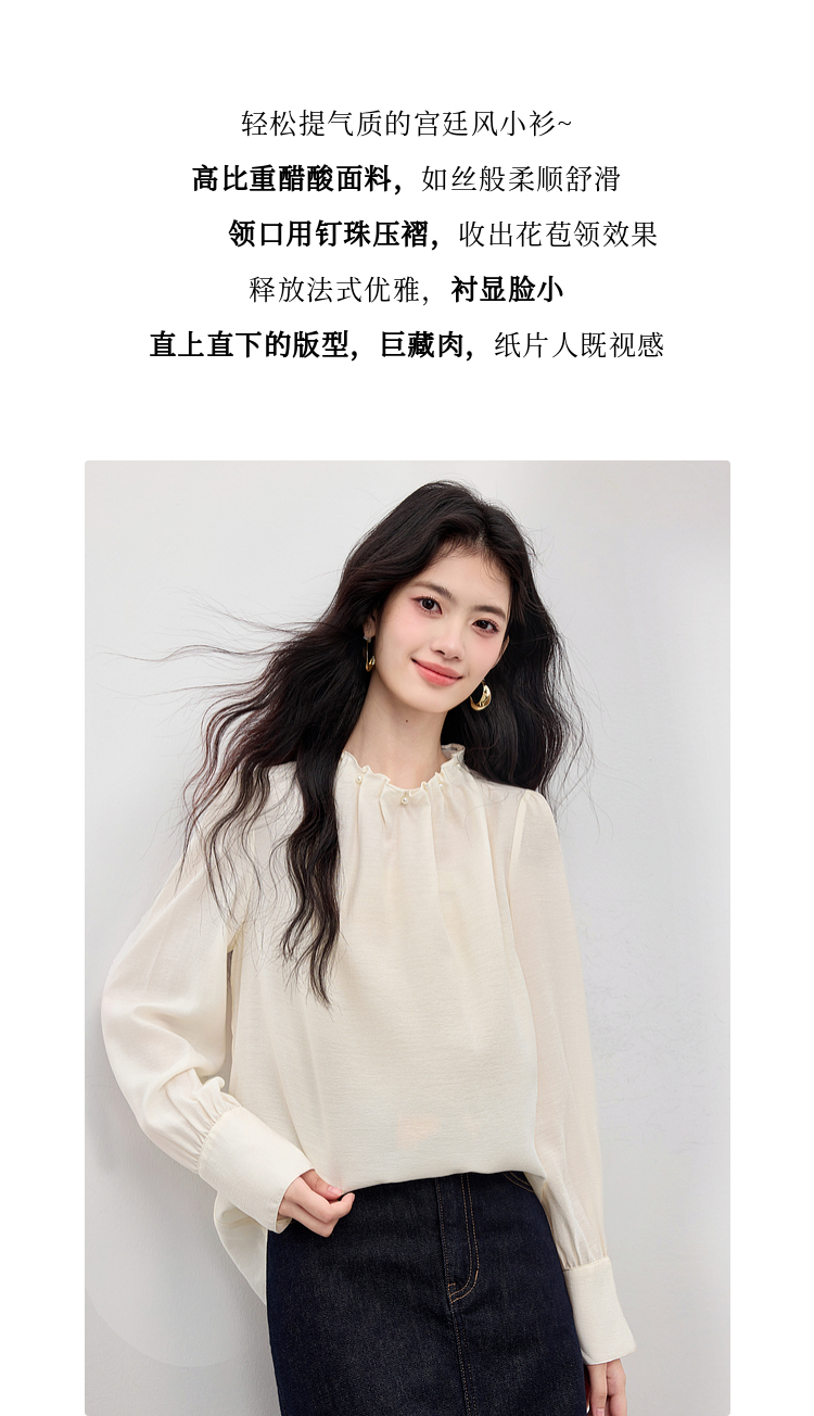 【08/12新品】熙世界醋酸钉珠花苞领衬衫女长袖2025秋季新款复古宫廷风气质上衣