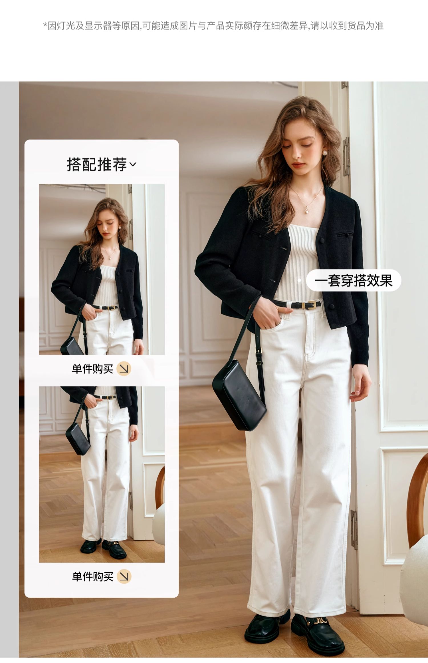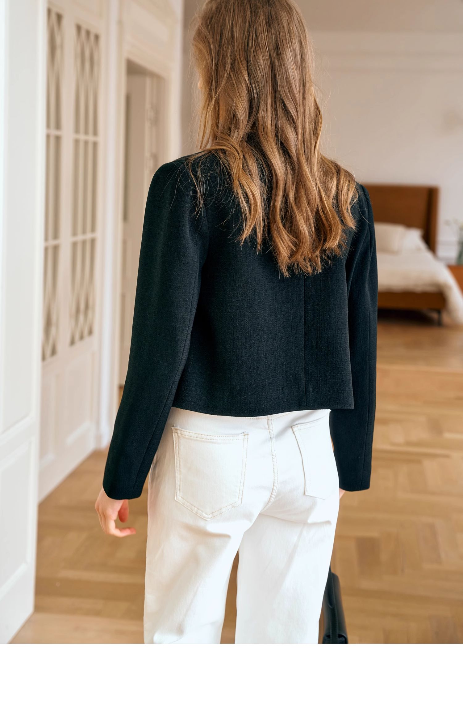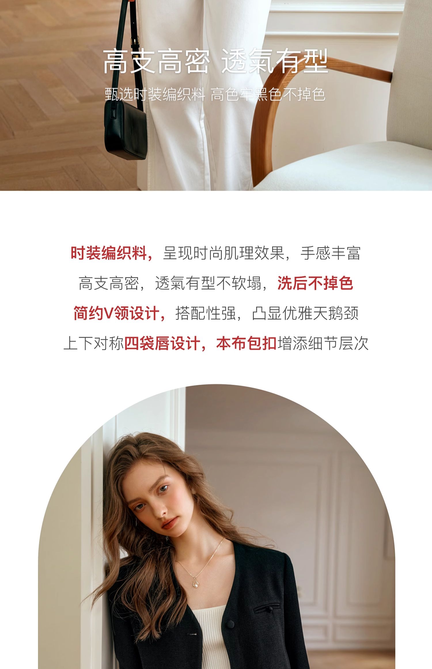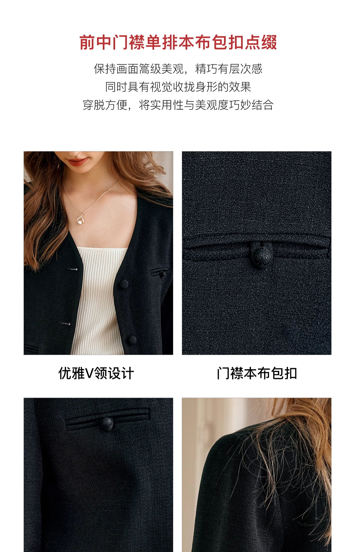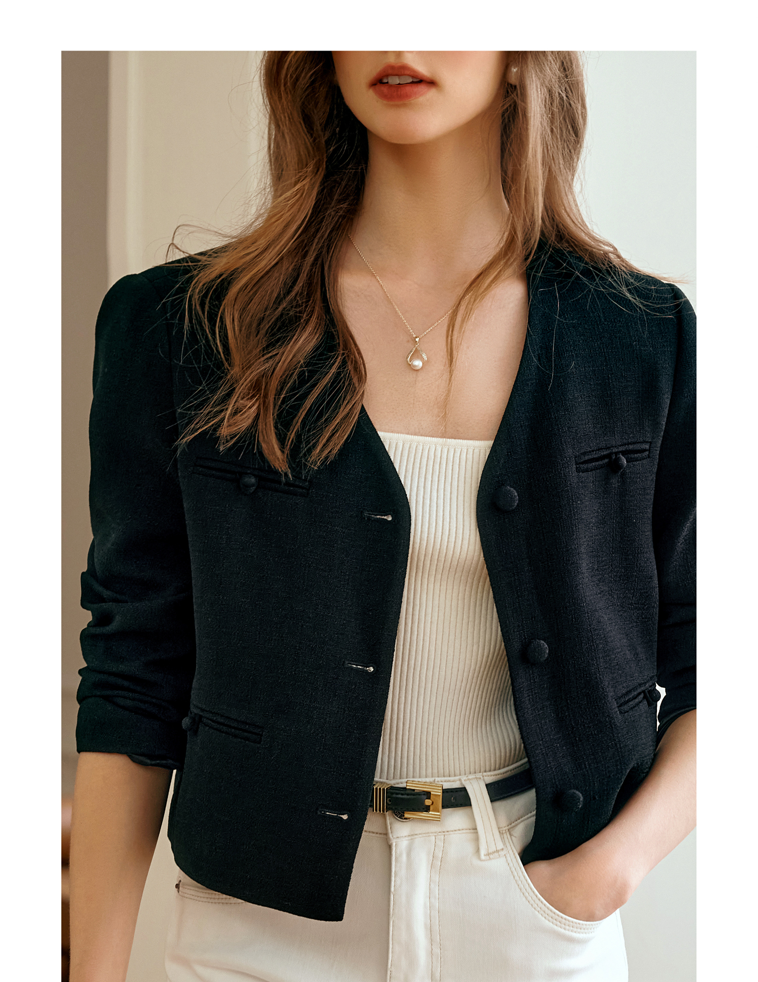 OLrain欧芮儿法式黑色小香风短外套女早秋2024新款通勤V领上衣