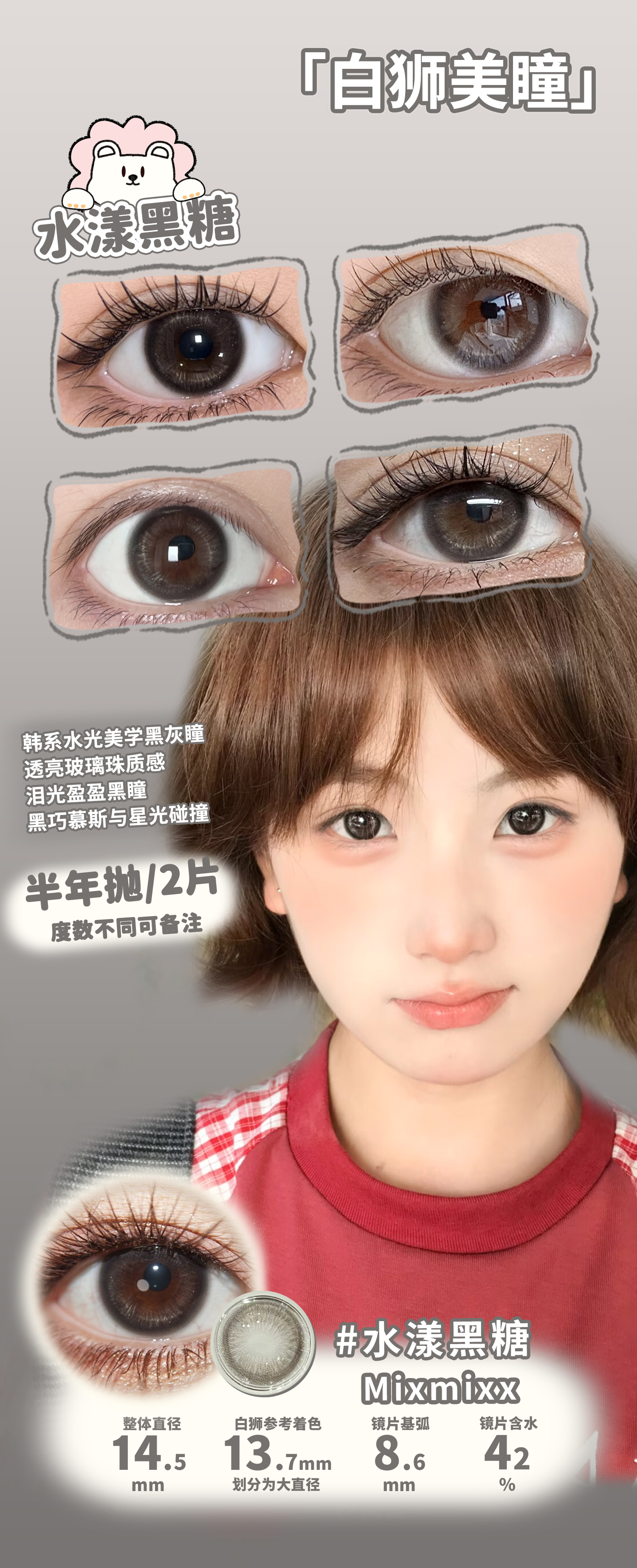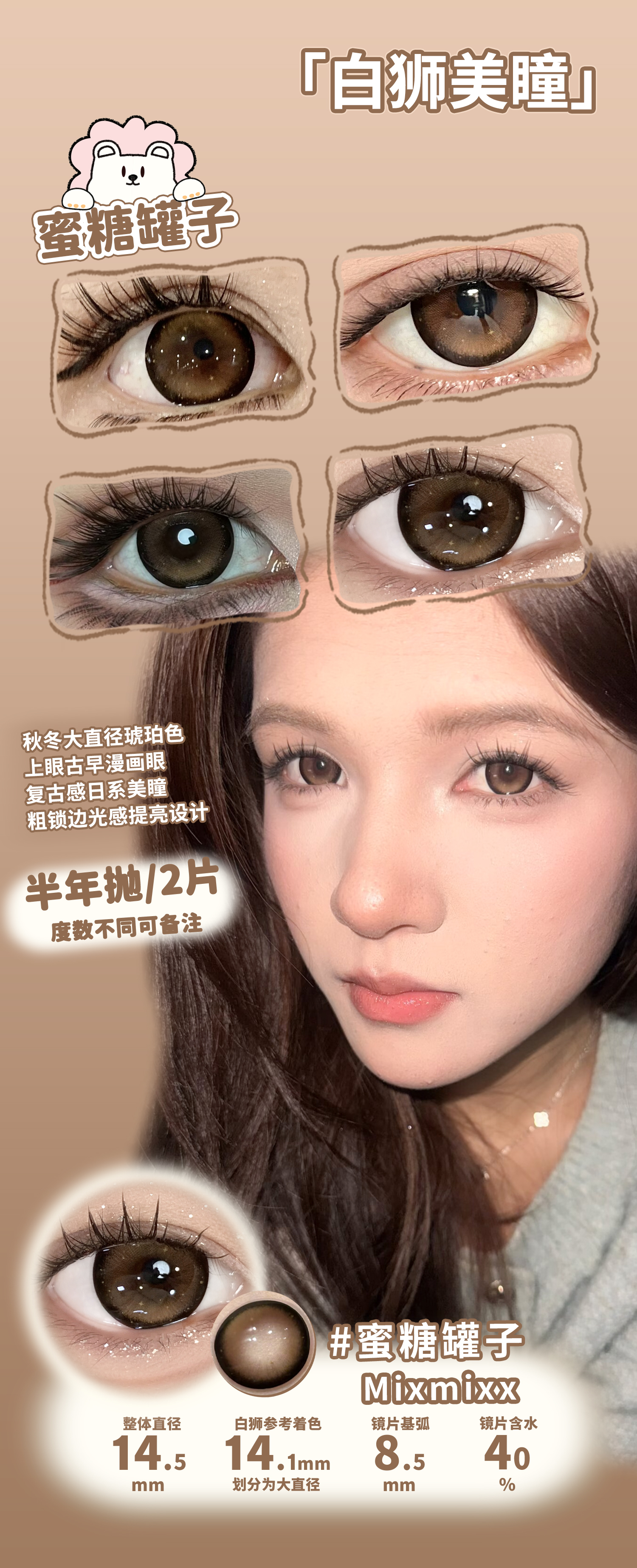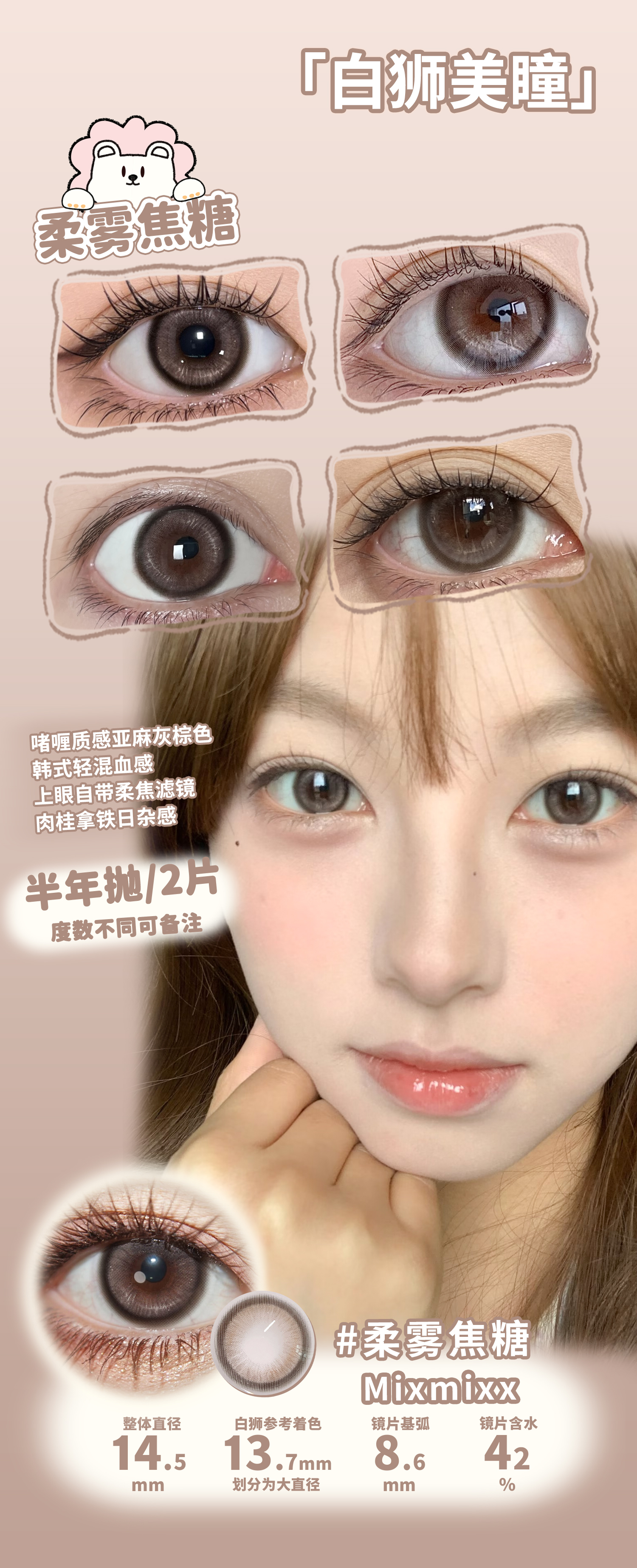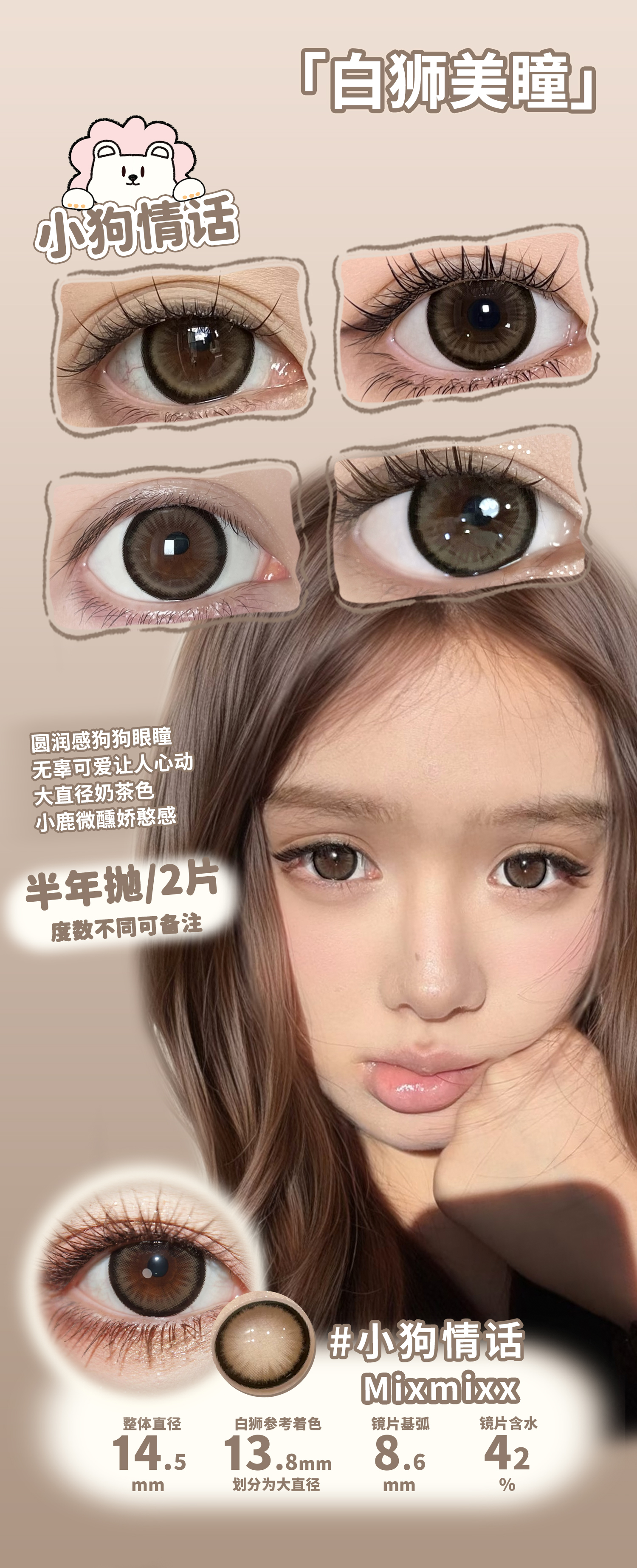 Mixmixx旗下·蜜糖罐子&小狗情话&复古大奶茶&水漾黑糖&柔雾焦糖 |14.2mm白狮参考着色大直径 半年抛2片