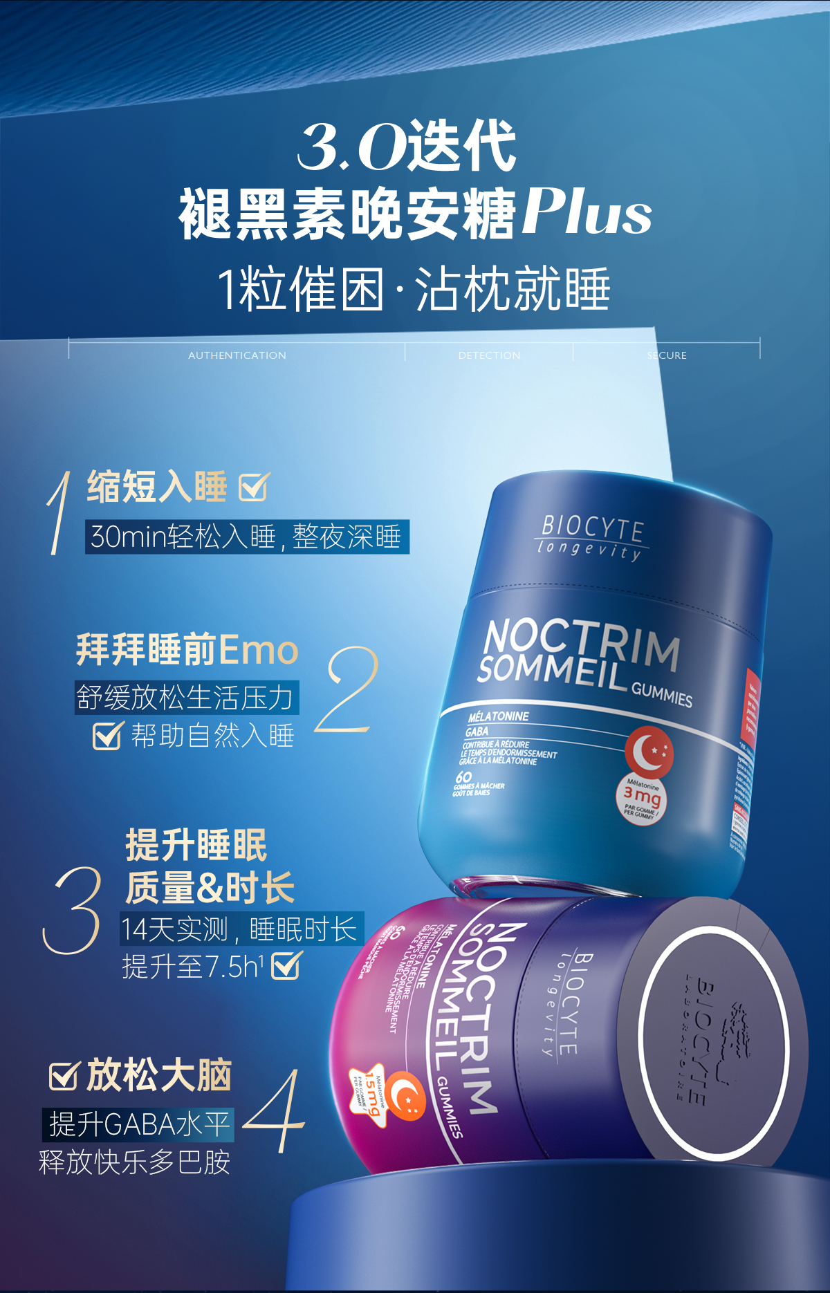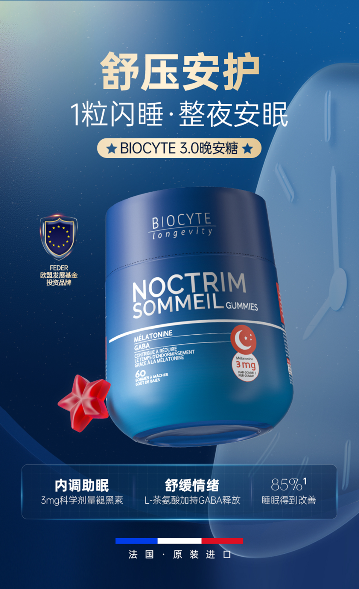 保税直发 BIOCYTE 碧维斯 褪黑素睡眠软糖(3mg)60粒/瓶 1瓶/2瓶/3瓶