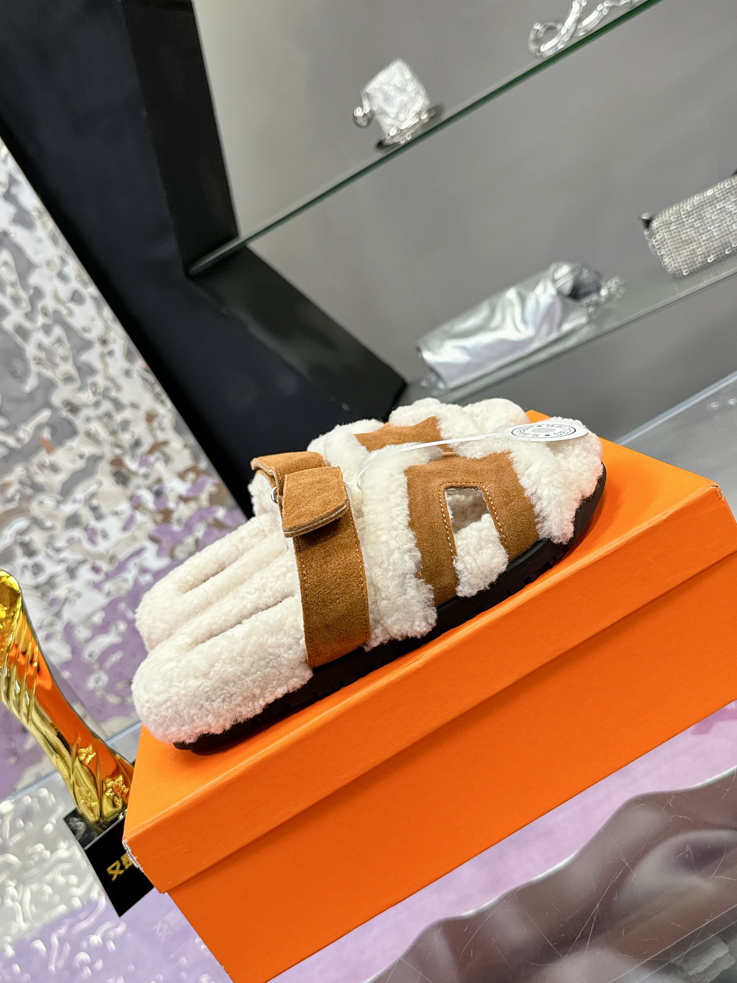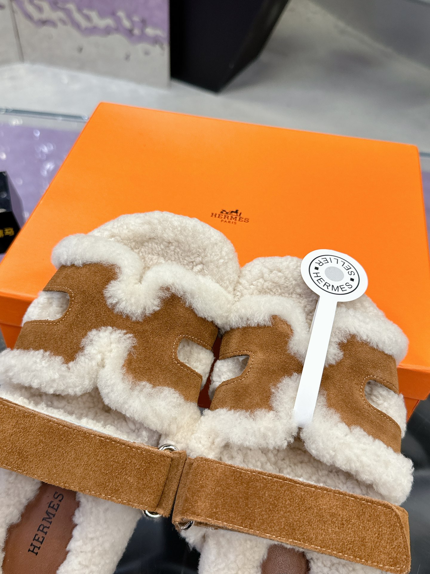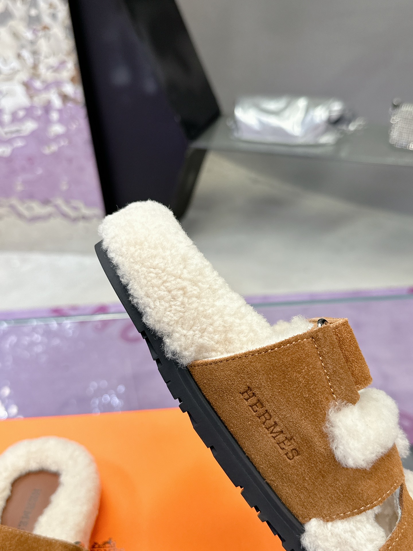 高版本! HERMES爱马仕经典爆款二舅🐑羊毛拖 真的是越看越好看系列 慵懒随性 搭配袜子穿,真的舒适又好看呀🤎 秋冬搭配必不可少!