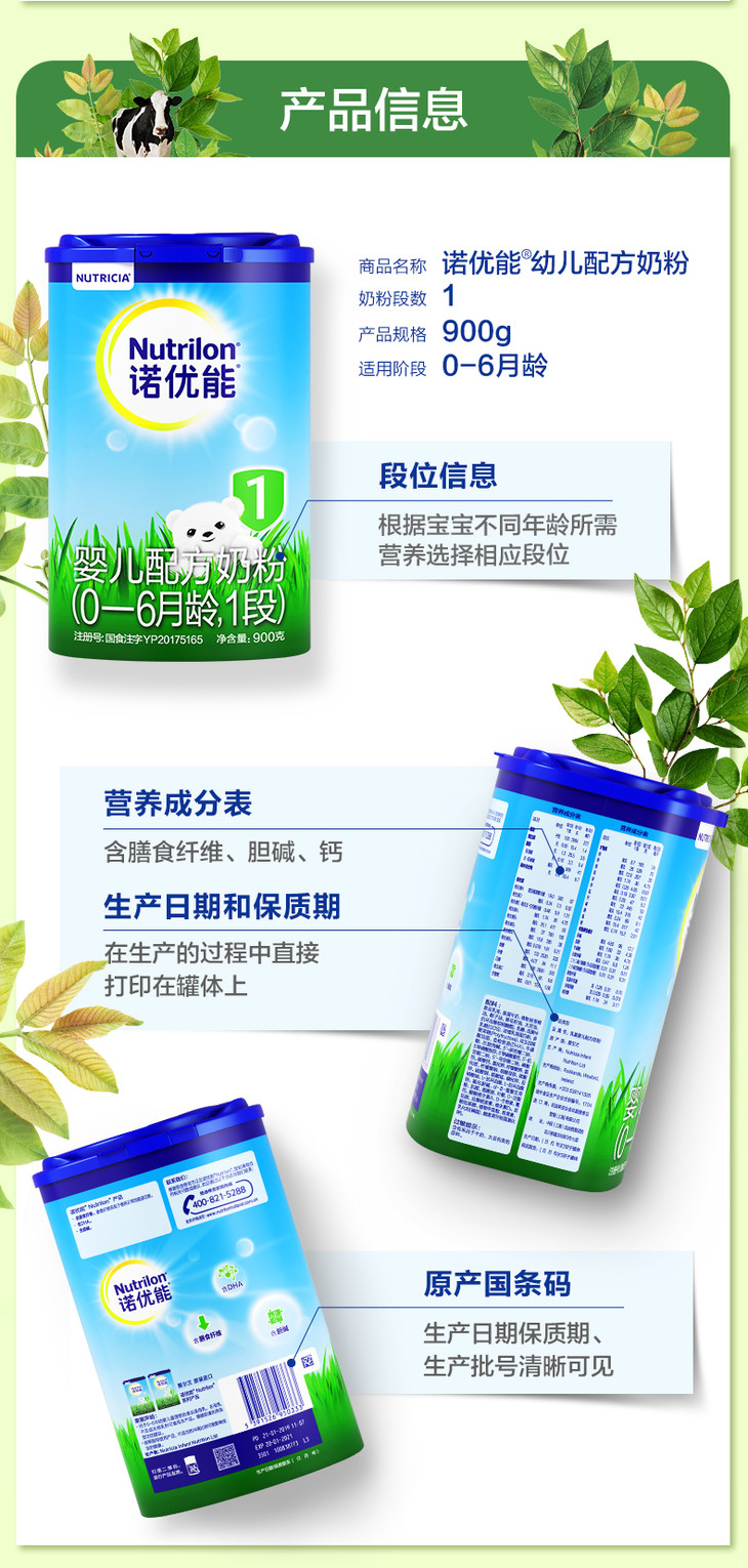 诺优能婴儿配方奶粉(0-6月龄1段)900g