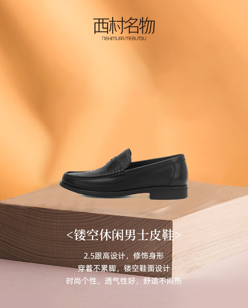 西村名物2024夏季新品正品真皮高档软底镂空透气商务休闲男士皮鞋X14AW13741