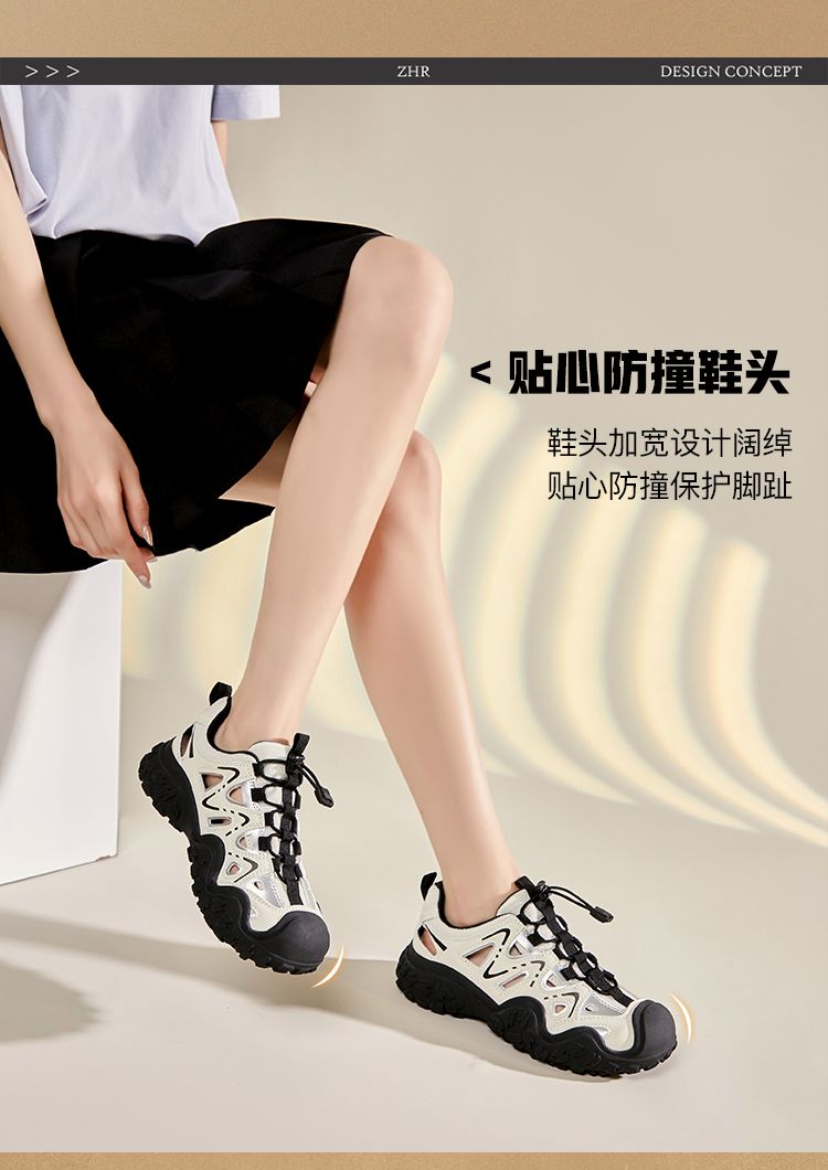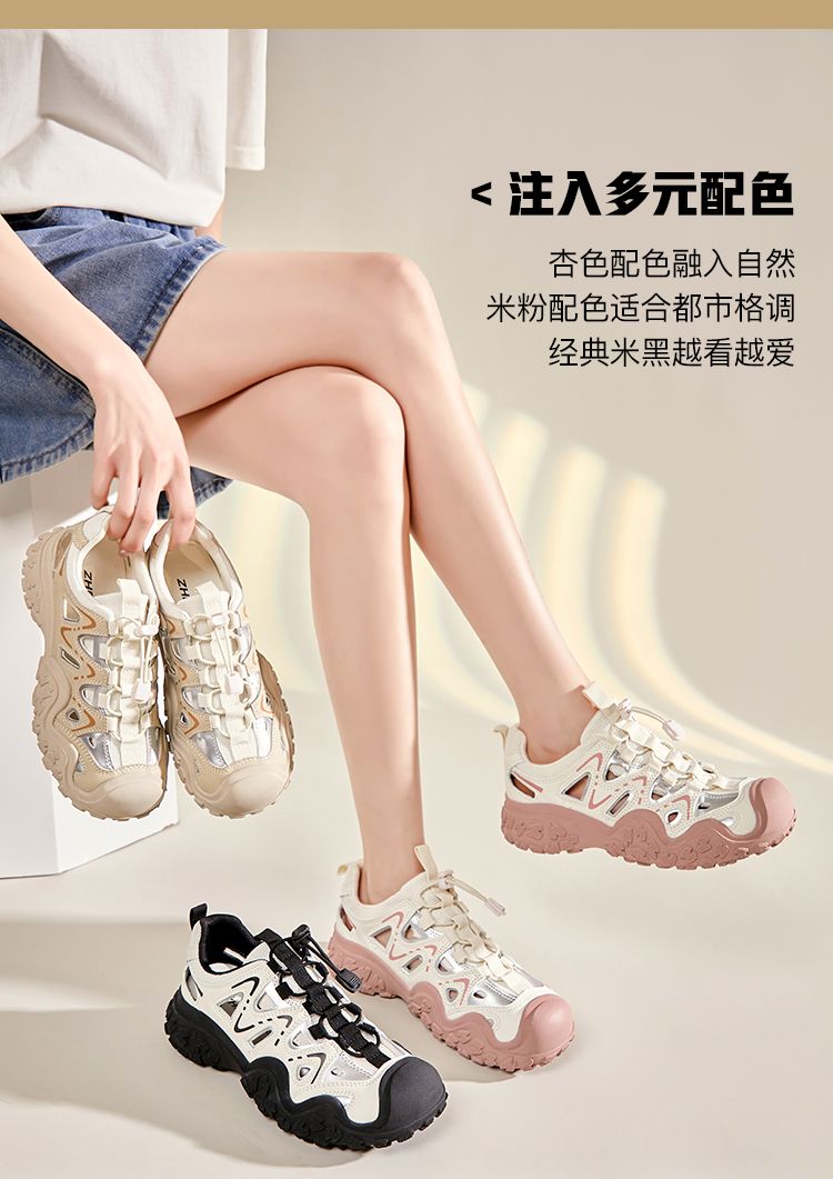 ZHR则则运动凉鞋女镂空丑萌鞋2024夏季新款防滑户外徒步登山鞋女