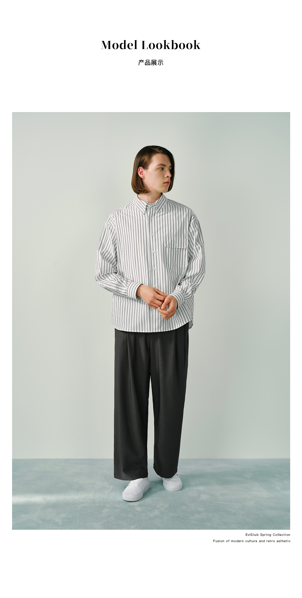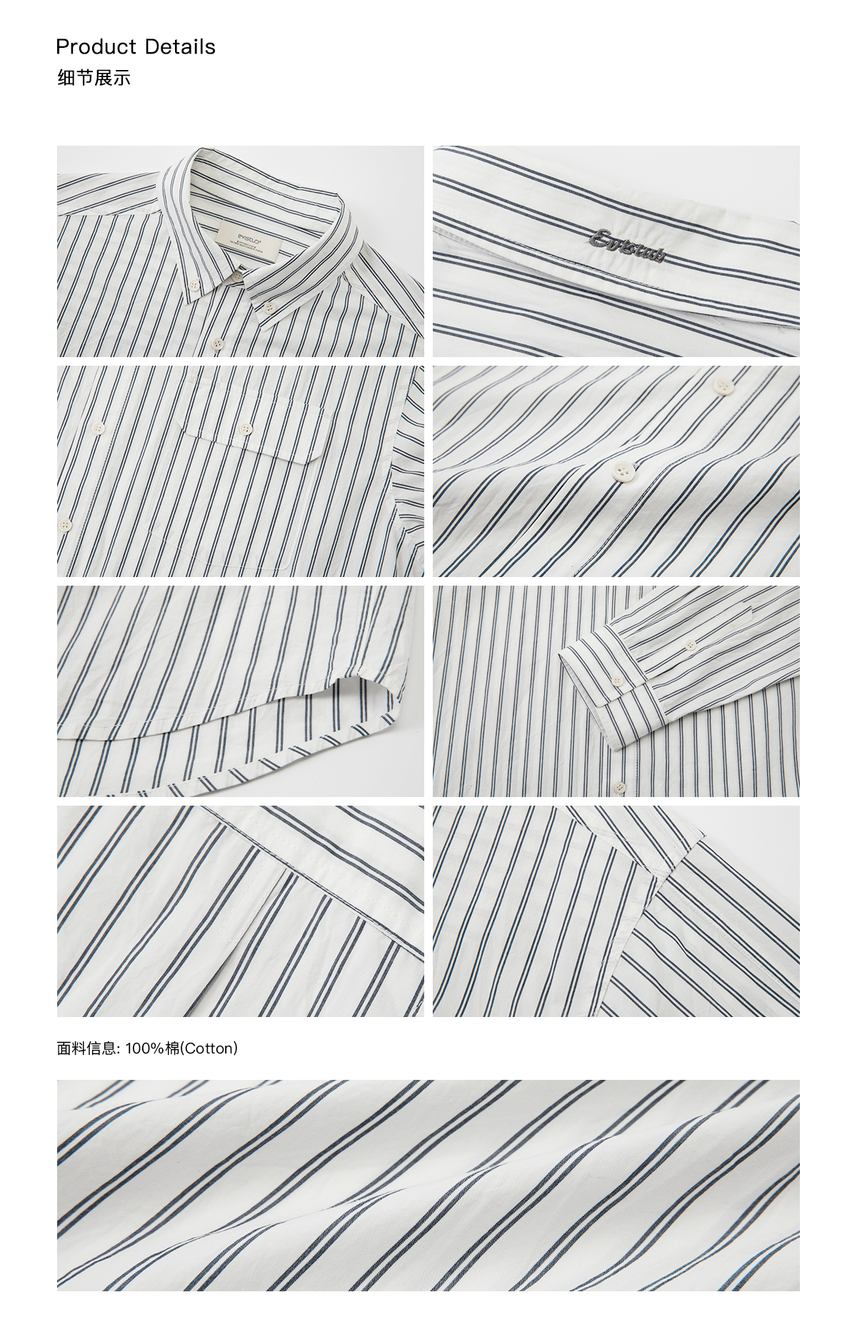Evistub/E-5CCS008/日本高支全棉双条纹衬衫