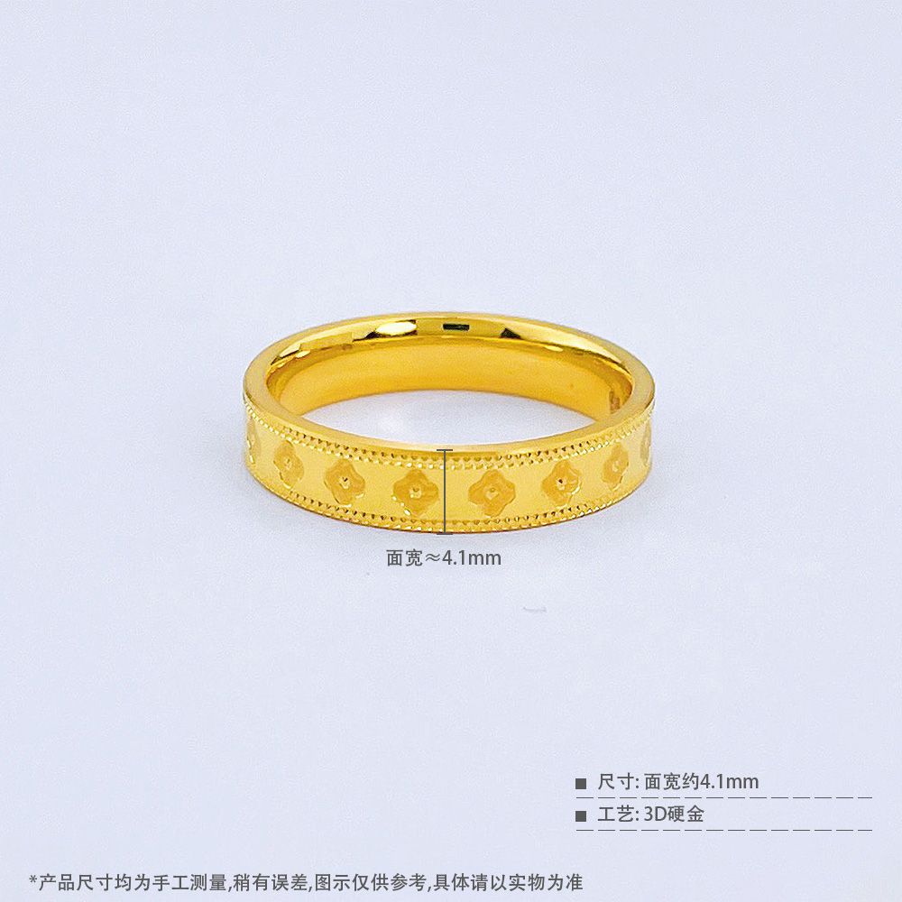 【限时克减150元】足金 【精品】3D硬金CNC空心固口四叶草万花筒圈戒(AR3DJZ00007)(预售产品下单后不退款不退货不换货不补差价)