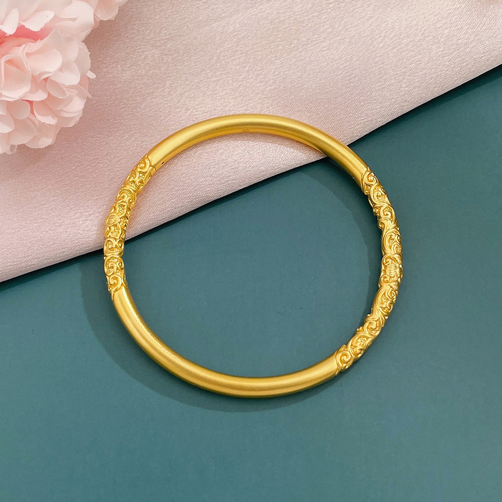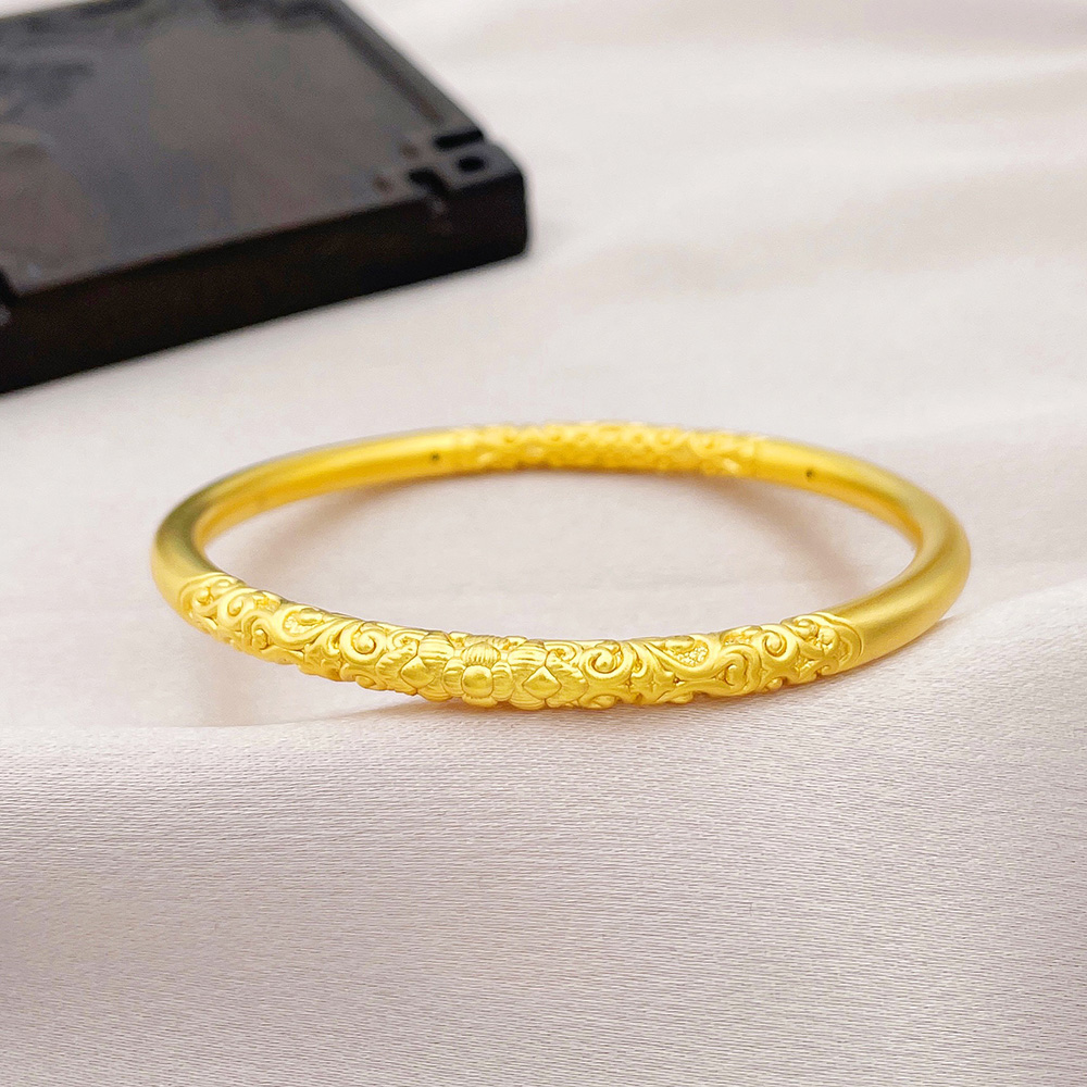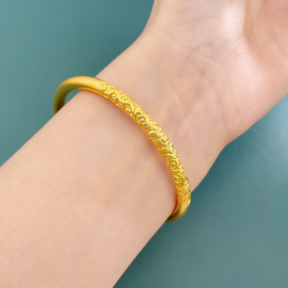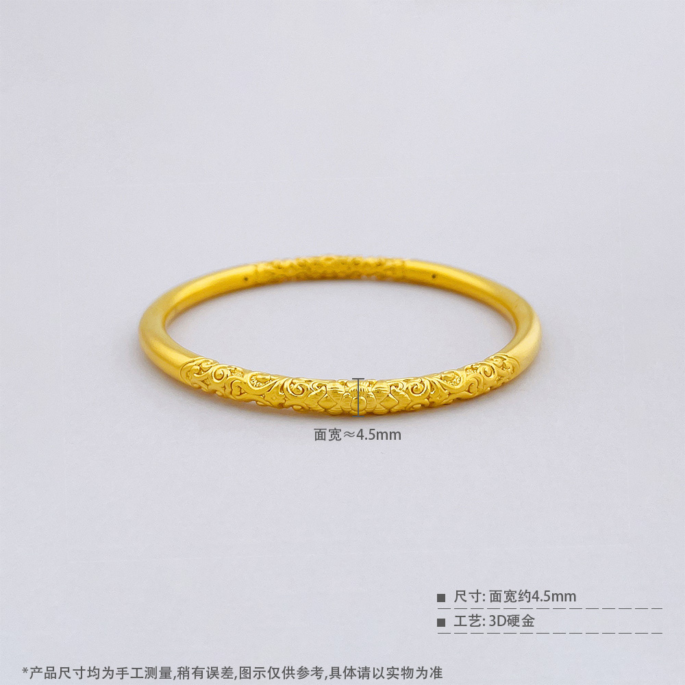 【限时克减150元】足金 【精品】3D硬金空心固口圆管手镯花开富贵敦煌缠枝纹花卉固口手镯(面宽约4.3-4.7mm)(AR3DSZ00028)(预售产品下单后不退款不退货不换货不补差价)