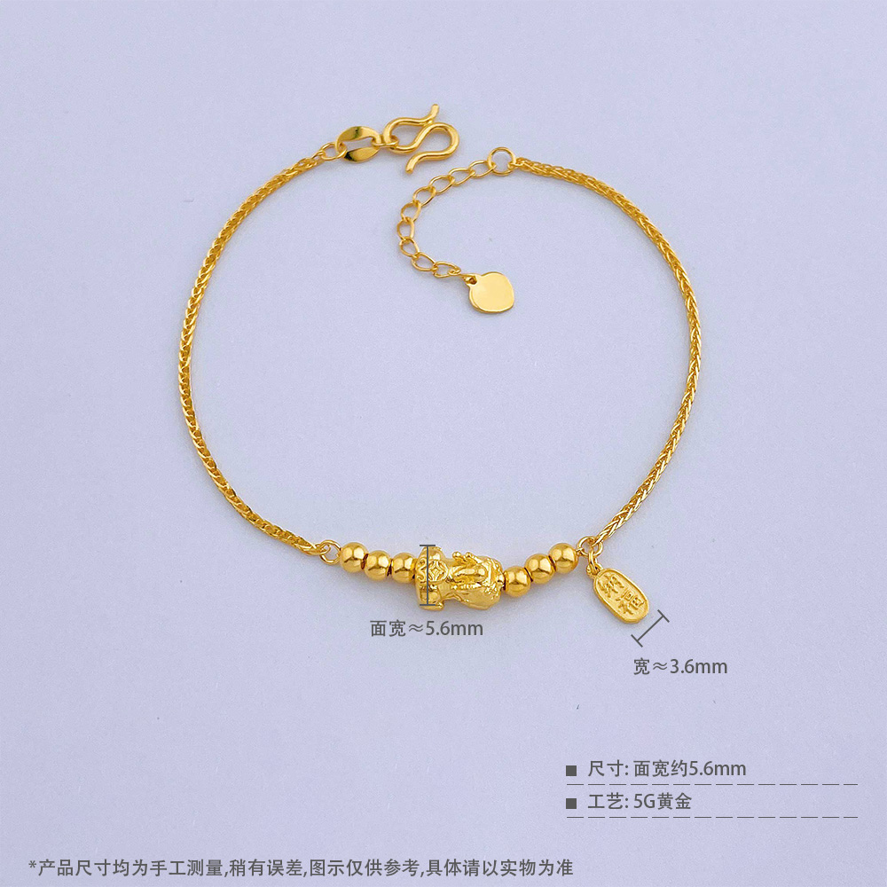 【限时克减150元】足金999 #招财纳福 5G黄金纳福吊饰貔貅宝宝串珠调节手链(AG5GSL00222)(预售产品下单后不退款不退货不换货不补差价)