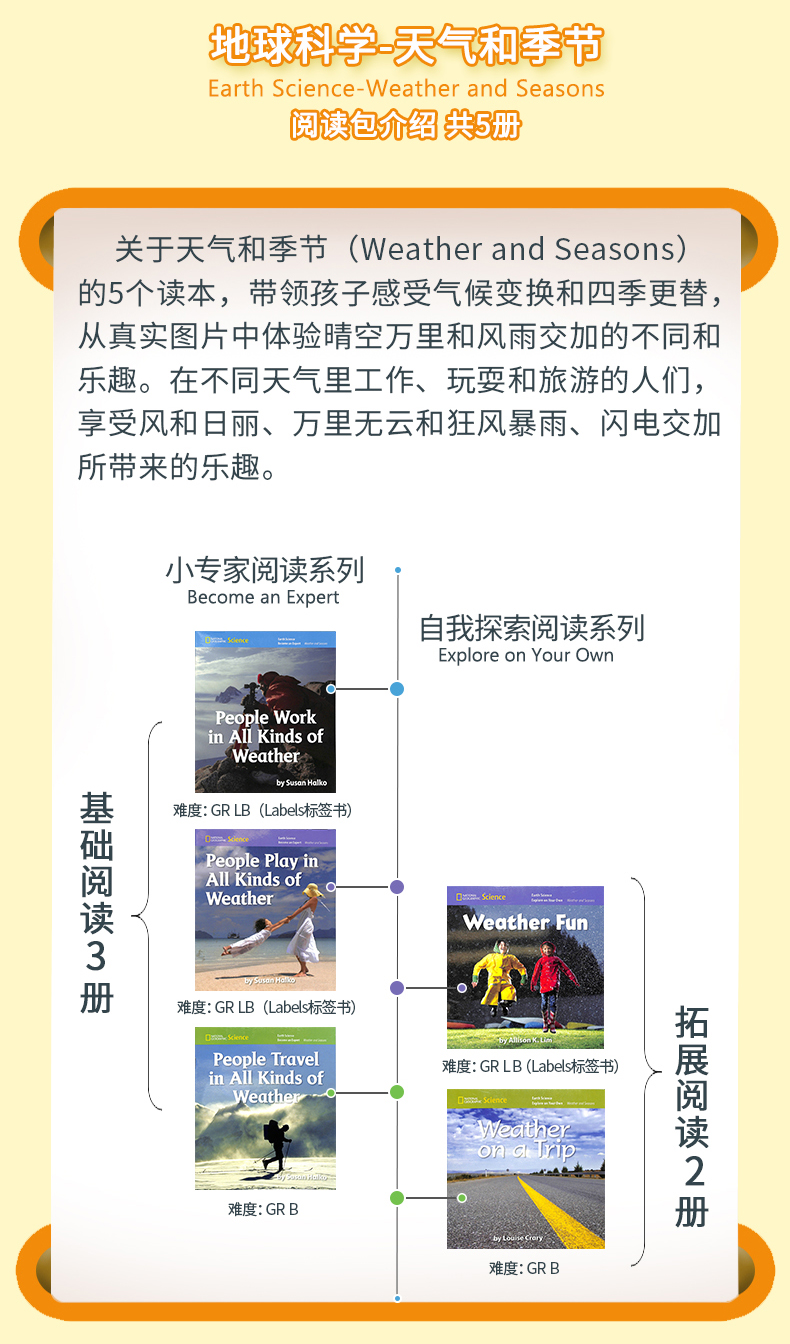 预售 【中商原版】美国国家地理科学入门1级天气和季节读本5册 National Geographic Science L1 Weather and Seasons 蓝思值BR含音频资源